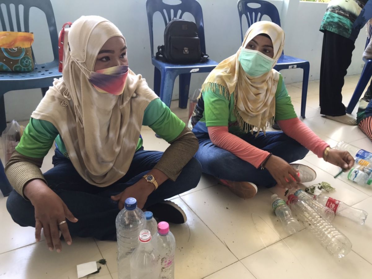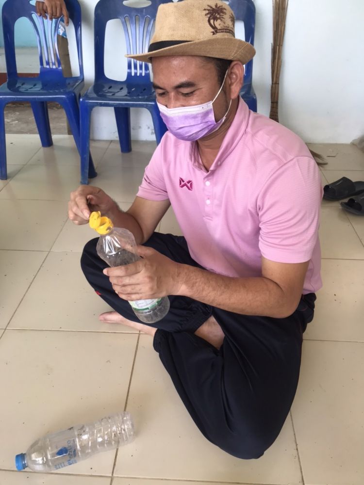 จัดกิจกรรมจัดการศึกษาเพื่อพัฒนาสังคมชุมชน หลักสูตรพัฒนาศักยภาพอาสาสมัครพิทักษ์ทรัพยากรธรรมชาติ โดยการนำขวดพลาสติกขยะชายทะเลมาประดิษฐ์เป็นที่ดักแมลง กระถางดอกไม้ลอยฟ้า