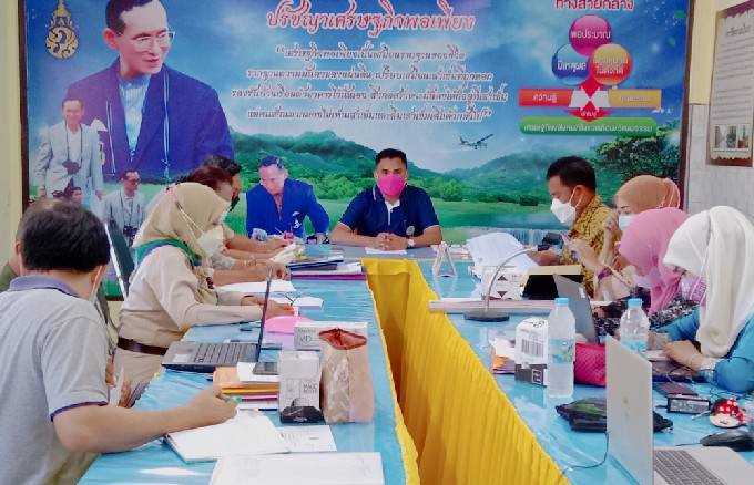 นายอาดำ ลิงาลาห์ ผู้อำนวยการศูนย์ กศน.อำเภอทุ่งหว้า จังหวัดสตูล ประชุมบุคลากร เพื่อติดตามการดำเนินงานไตรมาส 1-2