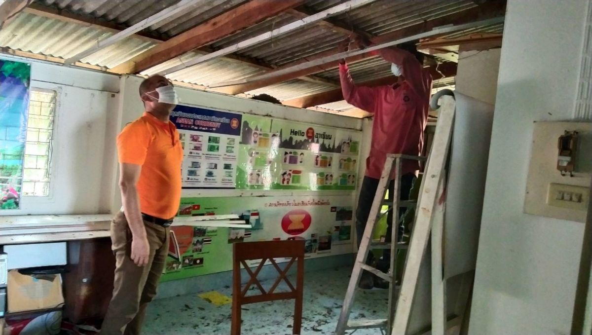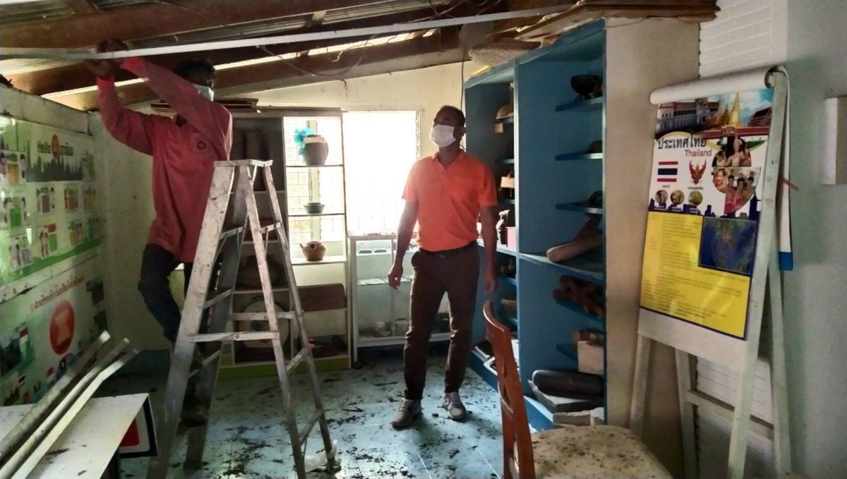 นายอาดำ ลิงาลาห์ ผู้อำนวยการศูนย์ กศน.อำเภอทุ่งหว้า จังหวัดสตูล มอบหมายให้นายสมศักดิ์ แคยิหวา หัวหน้าอาคารสถานที่ ดำเนินการปรุงปรับภูมิทัศน์ภายในห้องสมุด (กำจัดปลวก)