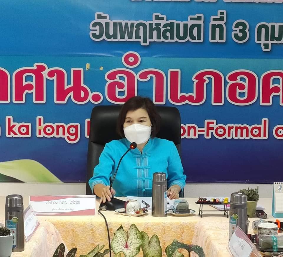 นางสาวจตุพร ทหารไทย ครูชำนาญการ รักษาการในตำแหน่ง ผู้อำนวยการศูนย์ กศน.อำเภอมะนัง จังหวัดสตูล พร้อมด้วยนายณัฐนิช แก้วเมฆ ครูผู้ช่วย ร่วมประชุมผู้บริหารและเจ้าที่ที่เกี่ยวข้องสัญจร ประจำเดือนกุมภาพันธ์ 2565 โดยมีผู้บริหาร ข้าราชการครู เจ้าหน้าฝ่ายแผน และผู้ที่เกี่ยวข้องเข้าร่วมประชุมเพื่อรับทราบนโยบายที่สำคัญของรัฐบาล และหารือข้อราชการที่สำคัญของสำนักงาน กศน.
