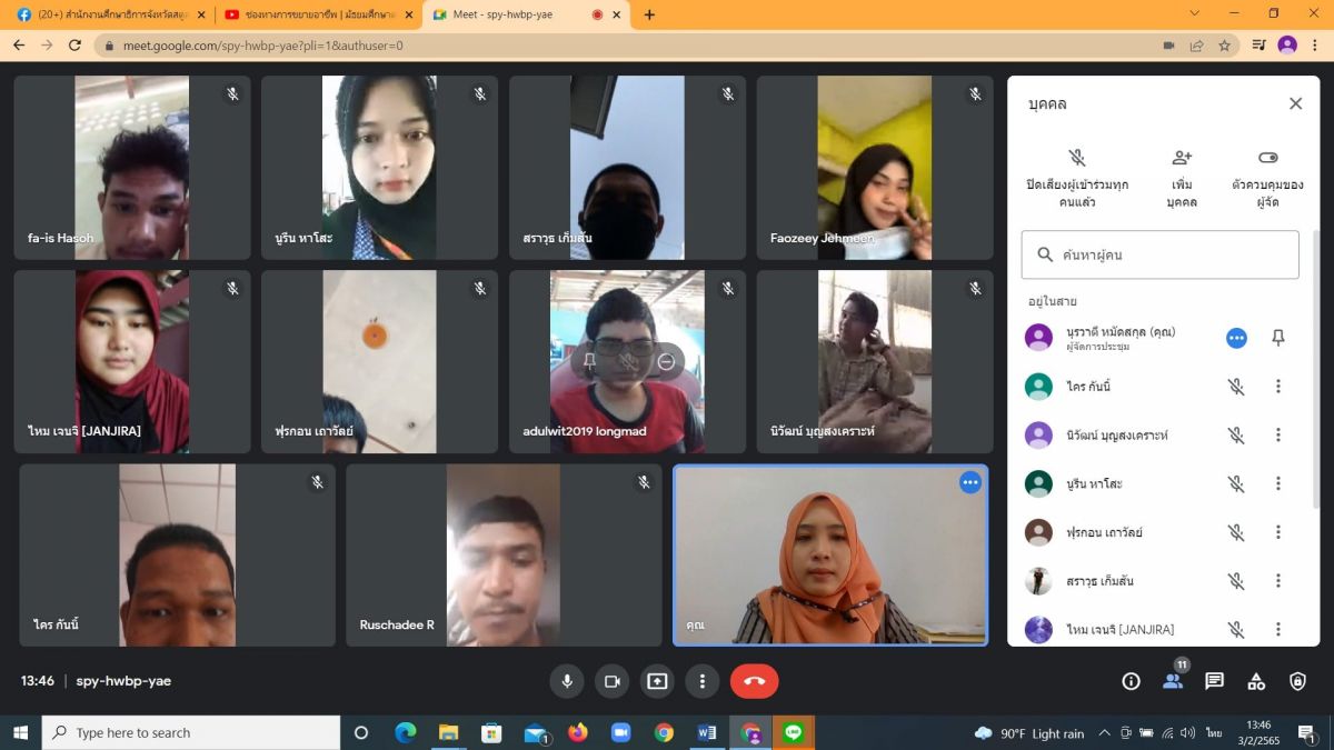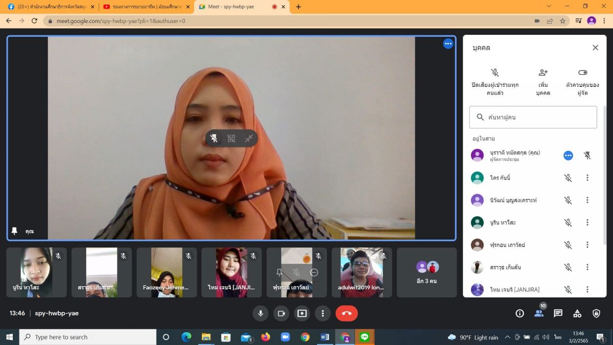 นางสาวนุรวาตี หมัดสกุล ครู กศน.ตำบลย่านซื่อ ได้รับมอบหมาย จากนางเนาวรัตน์ ศรีหมั่น ครู ชำนาญการ รักษาการในตำแหน่ง ผู้อำนวยการ กศน.อำเภอควนโดน จังหวัดสตูล จัดกระบวนการเรียนการสอนระบบออนไลน์ ผ่าน Google meet ในระดับมัธยมศึกษาตอนปลาย ประจำภาคเรียนที่ 2/2564 เพื่อเป็นการควบคุมและป้องกันการแพร่ระบาดของโรคติดเชื้อไวรัสโคโรน่า 2019 ณ กศน.ตำบลย่านซื่อ อำเภอควนโดน จังหวัดสตูล