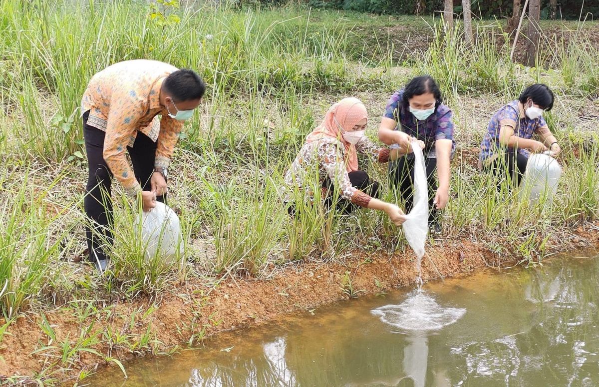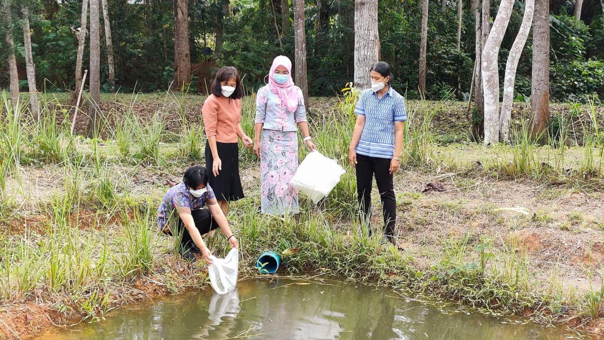 นางเนาวรัตน์ ศรีหมั่น ครูชำนาญการ รักษาการในตำแหน่ง ผู้อำนวยการ กศน.อำเภอควนโดน พร้อมด้วยคณะผู้บริหาร กศน.อำเภอและเจ้าหน้าที่ที่เกี่ยวข้องร่วมปล่อยปลากินพืช โดยมีนางสาวนราวรรณ เวชธรรม ผู้อำนวยการ สำนักงาน กศน.จังหวัดสตูล เป็นประธานในการดำเนินกิจกรรม ณ โคกหนองนา กศน.อำเภอควนกาหลง จังหวัดสตูล