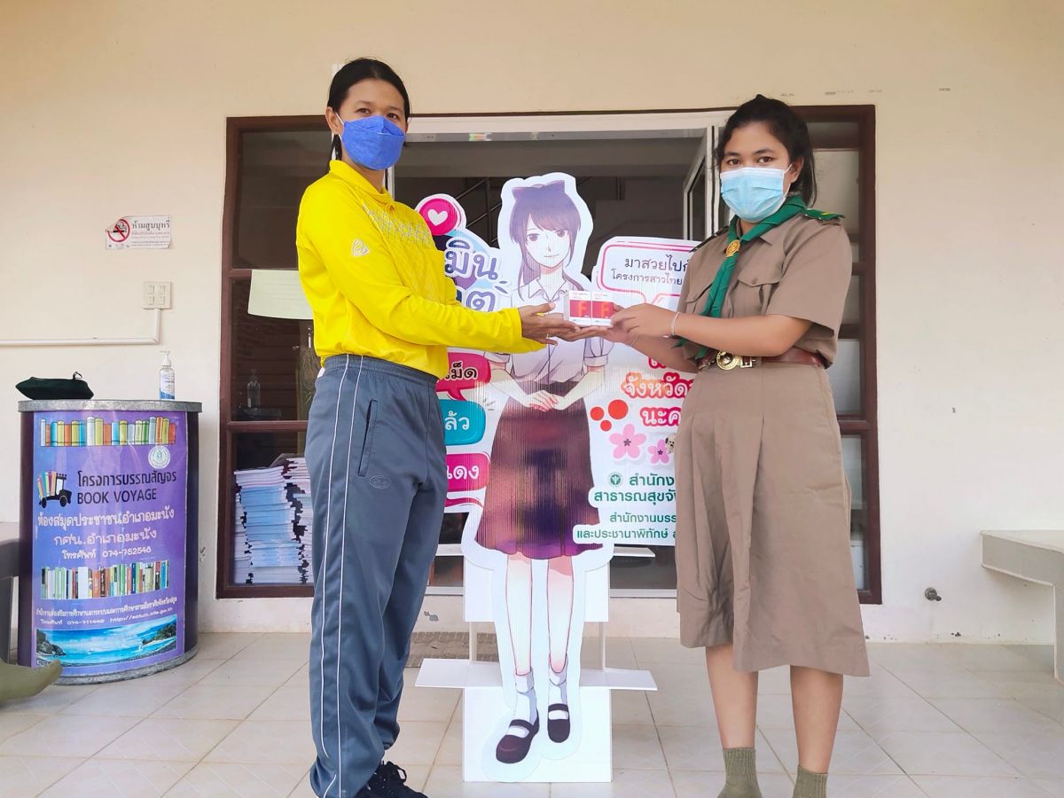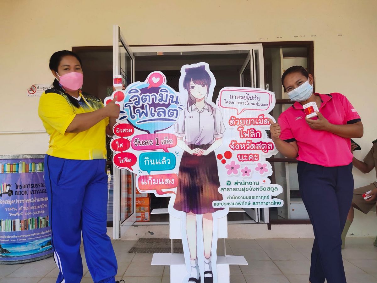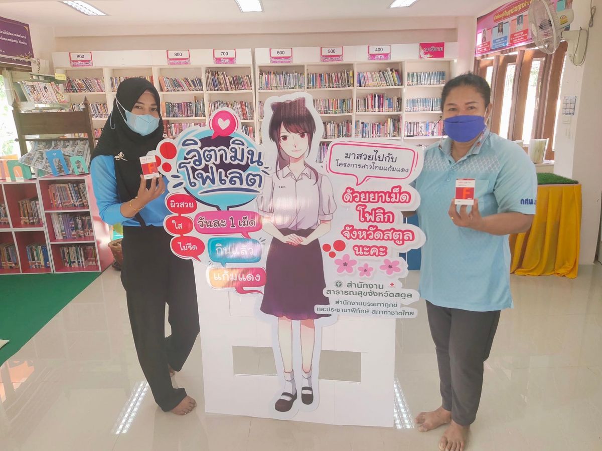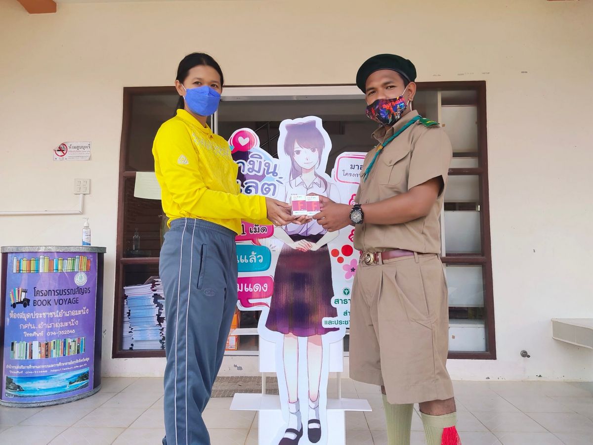 นางสาวจตุพร ทหารไทย ครูชำนาญการ รักษาการในตำแหน่ง ผู้อำนวยการศูน์ กศน.อำเภอมะนัง จังหวัดสตูล มอบวิตามินโฟเลตให้แก่ นักศึกษา และบุคลากร กศน.อำเภอมะนัง ตามโครงการสาวไทยแก้มแดง จากสำนักงานบรรเทาทุกข์ และประชานาพิทักษ์ สภากาชาดไทย ณ กศน.อำเภอมะนัง จังหวัดสตูล