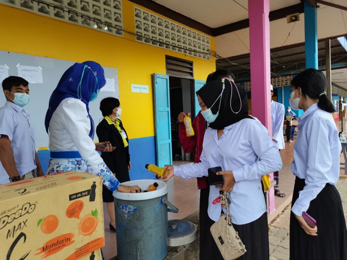 นางเนาวรัตน์ ศรีหมั่น ครูชำนาญการ รักษาการในตำแหน่ง ผู้อำนวยการ กศน.อำเภอควนโดน ได้มอบหมายให้บุคลากรในสังกัดสถานศึกษา แจกจ่ายน้ำผลไม้ดีโด้ จากรองผู้ว่าราชการจังหวัดสตูล ให้กับนักศึกษา กศน.อำเภอควนโดนที่เข้ารับการการทดสอบทางการศึกษาระดับชาติด้านการศึกษานอกระบบโรงเรียน(N-NET) ครั้งที่ 2 ปีการศึกษา 2564 ณ โรงเรียนอนุบาลควนโดน อำเภอควนโดน จังหวัดสตูล
