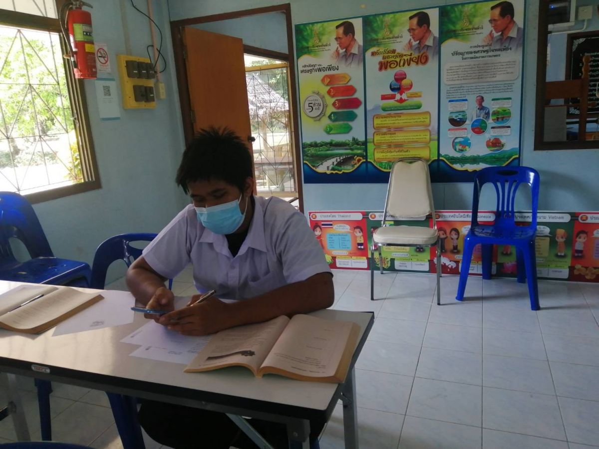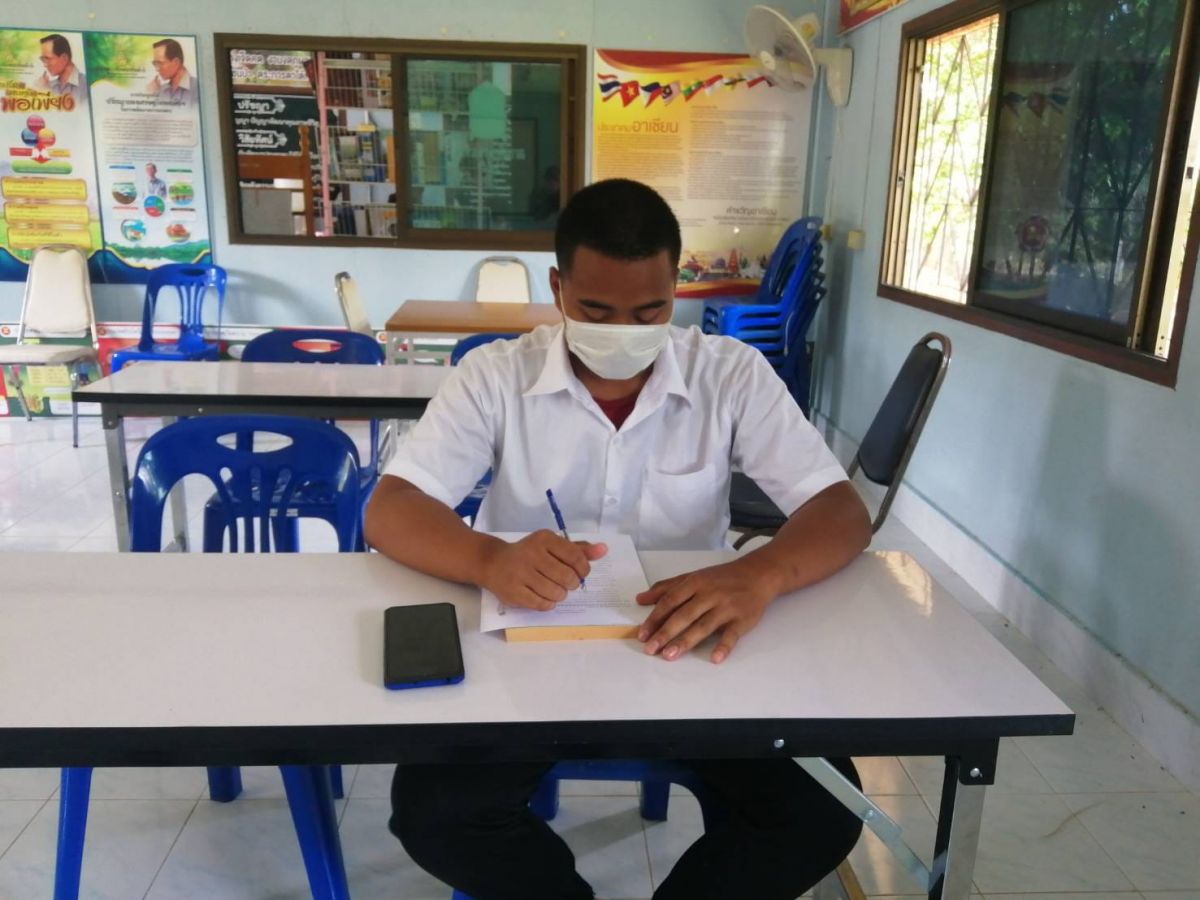 จัดระบวนการเรียนการสอน ระดับชั้นมัธยมศึกษาตอนต้น ภาคเรียนที่ 2 ปีการศึกษา 2564 ในรูปแบบ On Site ในการนี้เป็นไปตามมาตรการป้องกันการแพร่ระบาดของเชื้อไวรัสโคโรน่า COVID -19 ณ กศน.ตำบลปาล์มพัฒนา อำเภอมะนัง จังหวัดสตูล