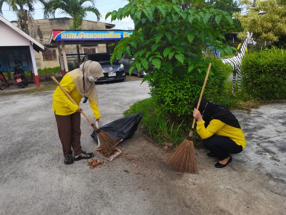 นางสาวอาฟีฟา อาลีมิง ครูอาสาสมัครประจำสถาบันศึกษาปอเนาะ พร้อมด้วยบุคลากร กศน.อำเภอควนโดน ได้รับมอบหมายจากนางเนาวรัตน์ ศรีหมั่น ครู ชำนาญการ รักษาการในตำแหน่ง ผู้อำนวยการ กศน.อำเภอควนโดน จังหวัดสตูล ร่วมพัฒนาปรับปรุงภูมิทัศน์สภาพแวดล้อมของหน่วยงาน/สถานศึกษา ให้มีความสะอาด ร่มรื่นปลอดภัย สร้างความสนใจให้กับผู้เรียนและผู้รับบริการ โดยร่วมกันมือกันทำความสะอาดและปรับปรุงภูมิทัศน์ บริเวณรอบๆของ กศน.อำเภอควนโดน จังหวัดสตูล