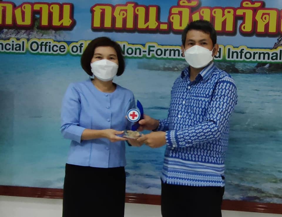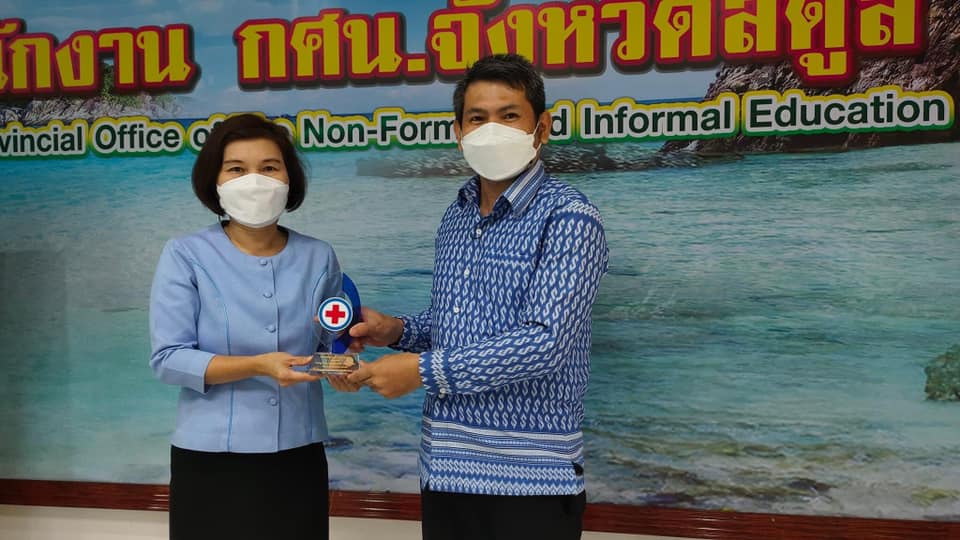 นายทวีศักดิ์ แซ่เจน ครูชำนาญการ รักษาการในตำแหน่งผู้อำนวยการศูนย์ กศน.อำเภอควนกาหลง เข้ารับมอบโล่มาตรฐานชมรมอาสายุวกาชาด ประจำปี 2565 ที่ส่งเสริมและสนับสนุนการจัดกิจกรรมอาสายุวกาชาดเป็นระยะเวลา 7 ปี โดยมีนางสาวนราวรรณ เวชธรรม ผู้อำนวยการ สำนักงาน กศน.จังหวัดสตูล ส่งมอบโล่ให้กับ กศน.อำเภอควนกาหลง ณ สำนักงาน กศน.จังหวัดสตูล