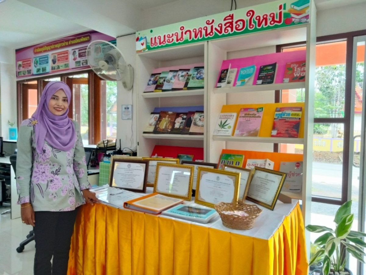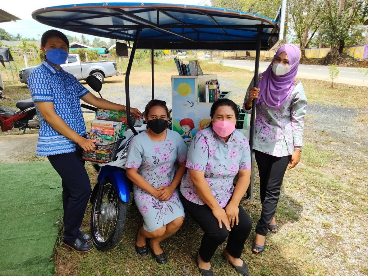 นางสาวจตุพร ทหารไทย ครูชำนาญการ รักษาการในตำแหน่ง ผู้อำนวยการศูนย์ กศน.อำเภอมะนัง จังหวัดสตูล พร้อมด้วยนางสาวนริสรา พงค์หลง บรรณารักษ์อัตราจ้าง ห้องสมุดประชาชนอำเภอมะนัง และคณะครู