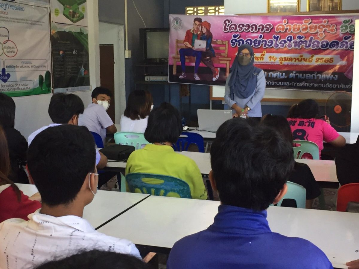 นางภัทรพร อุโหยบ ครูอาสาสมัครฯ จัดโครงการค่ายวัยรุ่น วัยใส รักอย่างไรให้ปลอดภัย เพื่อให้นักศึกษามีทักษะชีวิตเกี่ยวกับเพศศึกษา สามารถวางแผนการใช้ชีวิตได้อย่างมีคุณภาพ โดยมีนักศึกษาเข้าร่วม จำนวน 60 คน ณ กศน.ตำบลกำแพง อำเภอละงู จังหวัดสตูล