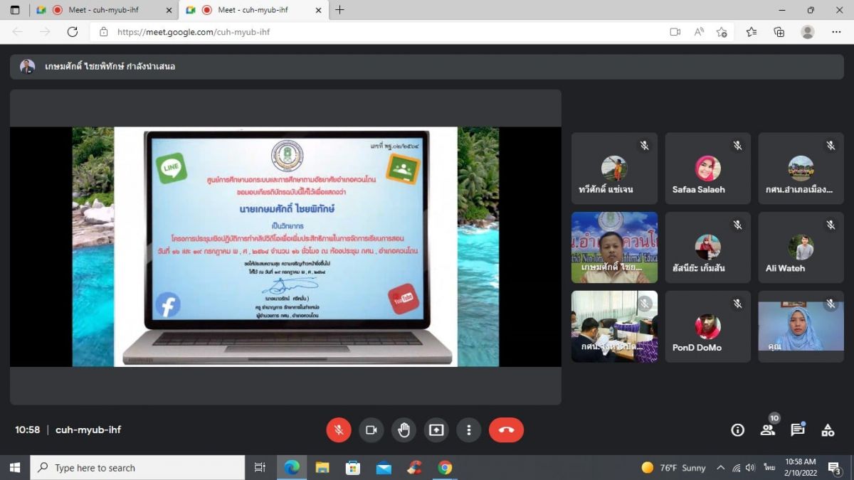 นายอาดำ ลิงาลาห์ ผู้อำนวยการศูนย์ กศน.อำเภอทุ่งหว้า จังหวัดสตูล มอบหมายให้นางวิชุตา เกษม ครูกศน.ตำบล เข้าร่วมประเมินครูกศน.ตำบลดีเด่น ผ่าน Google meet