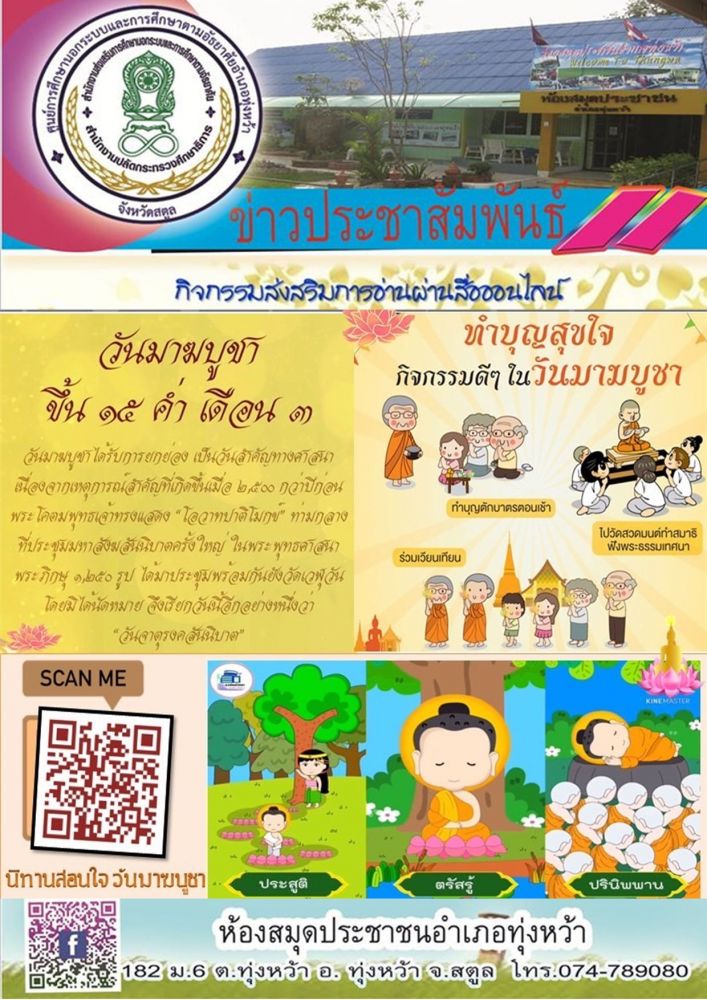 ห้องสมุดประชาชนอำเภอทุ่งหว้า ส่งเสริมการอ่านออนไลน์📚📖 \"วันมาฆบูชา\"