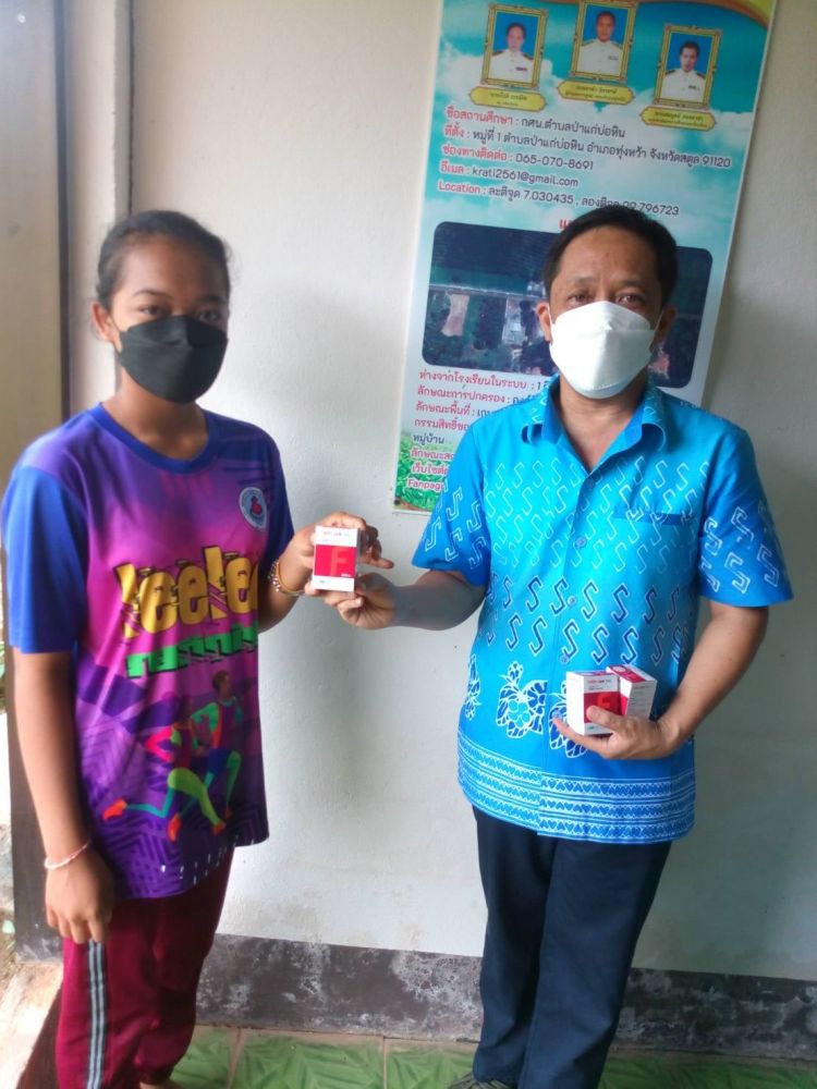 นายอาดำ ลิงาลาห์ ผู้อำนวยการศูนย์ กศน.อำเภอทุ่งหว้า จังหวัดสตูล มอบหมายให้นายกีรติ เรทมิฬ ครูกศน.ตำบล แจกวิตามินโฟเลตแก่นักศึกษากศน. .