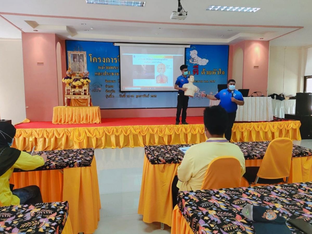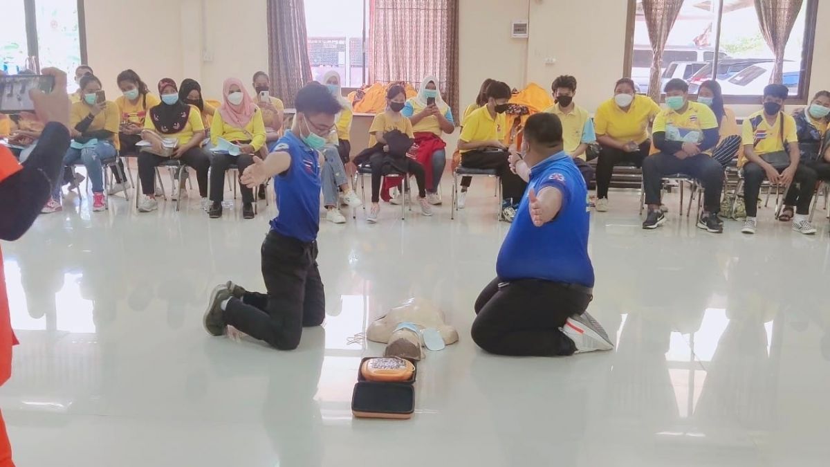 ณ ห้องประชุมพญากาหลง สำนักงาน กศน.จังหวัดสตูล ประกอบด้วย กลุ่มเป้าหมาย นักศึกษา กศน.อำเภอเมืองสตูล กศน.อำเภอท่าแพ กศน.อำเภอมะนัง กศน.อำเภอละงู และ กศน.อำเภอควนกาหลง ซึ่งการอบรมในวันที่ 2 เรื่องการปฐมพยาบาลเบื้องต้นและการช่วยชีวิตขั้นพื้นฐาน (CPR) โดยมูลนิธิกู้ภัยธรรมรังสี จังหวัดสตูล และจิตอาสาพัฒนาการบำเพ็ญประโยชน์
