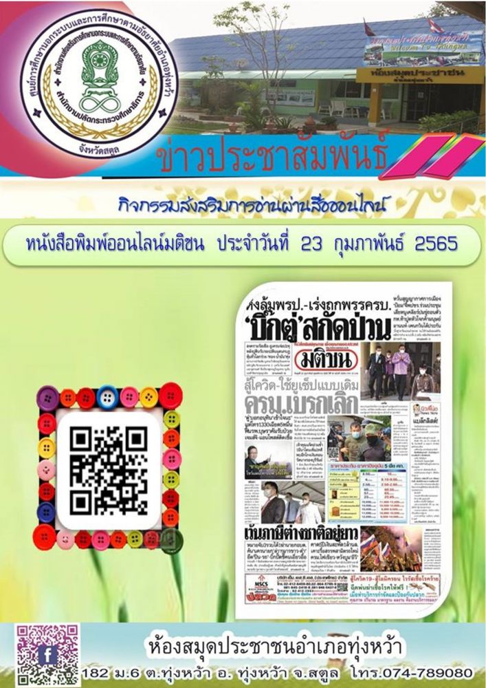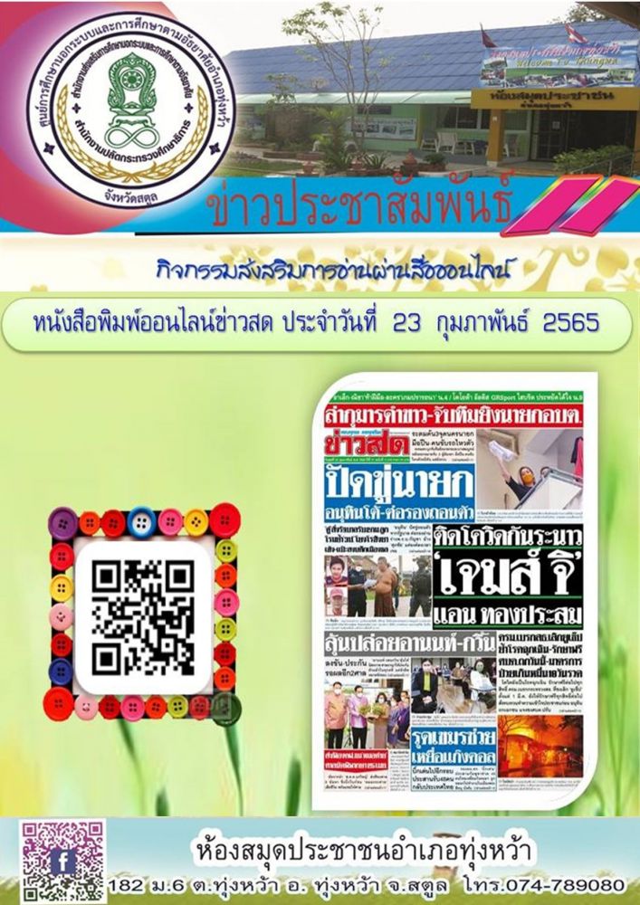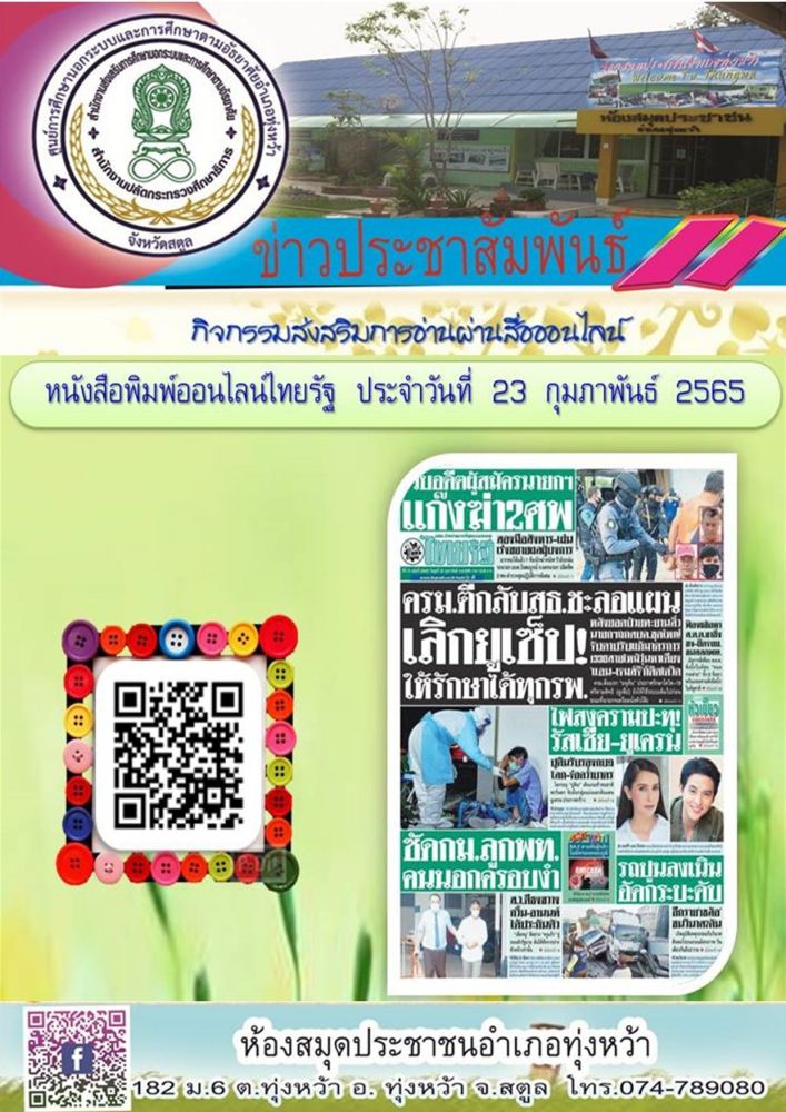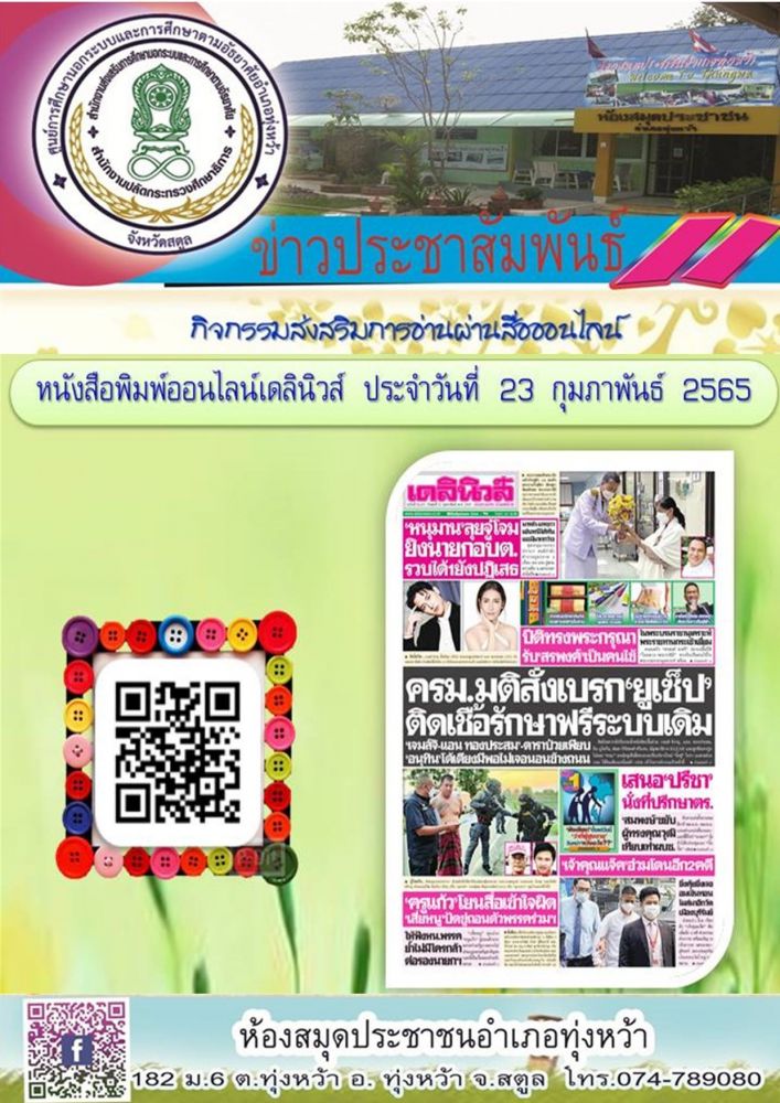 ห้องสมุดประชาชนอำเภอทุ่งหว้า ส่งเสริมการอ่านออนไลน์📚📖 \"หนังสือพิมพ์ออนไลน์ \"