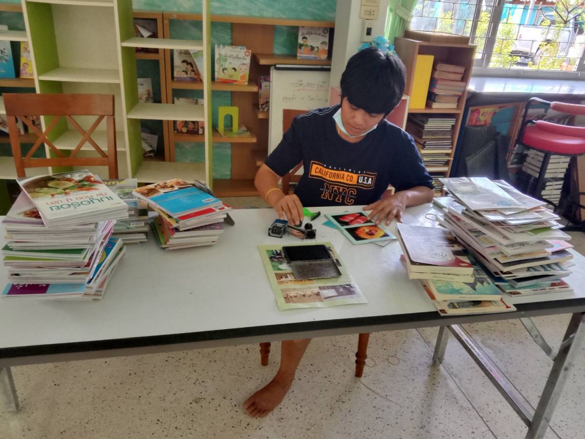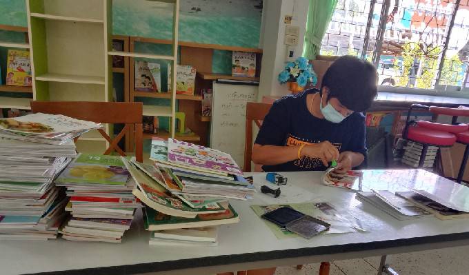 นายอาดำ ลิงาลาห์ ผู้อำนวยการศูนย์ กศน.อำเภอทุ่งหว้า จังหวัดสตูล มอบหมายให้นางสาวพัชรี ยอดราช บรรณารักษ์ แนะนำอาสาสมัครส่งเสริมการอ่าน จัดทำงานเทคนิค ประทับตราหนังสือ ติดบาร์โค้ตหนังสือ