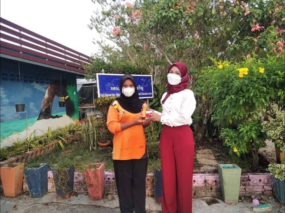 กศน.อำเภอควนกาหลงส่งมอบยาเม็ดโฟลิกให้กับนักศึกษาในพื้นท่ีตำบลอุใดเจริญ