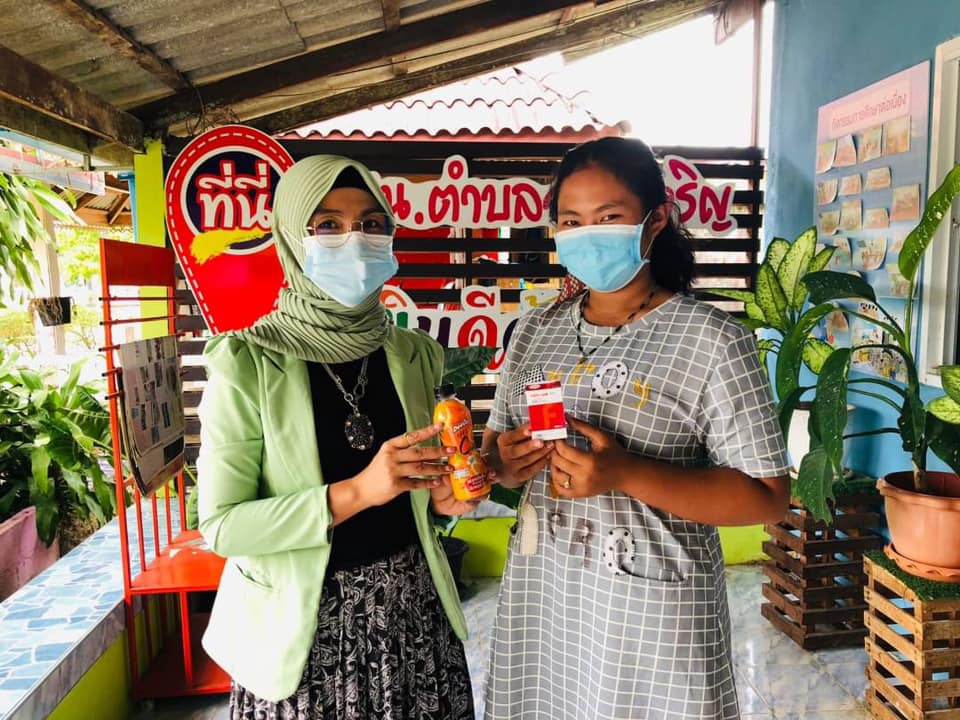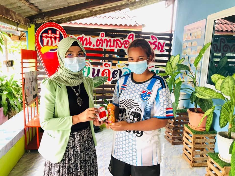 กศน.อำเภอควนกาหลงส่งมอบน้ำผลไม้ดีโด้และเม็ดยาโฟลิกให้กับนักศึกษาในพื้นท่ีตำบลอุใดเจริญ