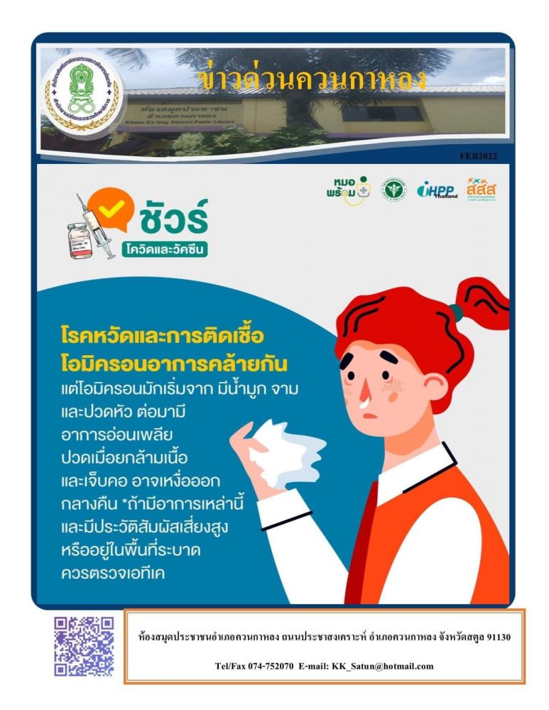 นายทวีศักดิ์ แซ่เจน ครูชำนาญการ รักษาการในตำแหน่งผู้อำนวยการ กศน. อำเภอควนกาหลง มอบหมายให้บรรณารักษ์ห้องสมุดประชาชนอำเภอควนกาหลง จัดกิจกรรมส่งเสริมการอ่านผ่านสื่อออนไลน์ในช่วงสถานการณ์การแพร่ระบาดของ Covid19 เพื่อส่งเสริมให้ประชาชนมีความรู้ ความเข้าใจ ในการป้องกันตนเองและบุคคลใกล้ชิดให้ปลอดภัยจากการแพร่ระบาดของโรคดังกล่าว