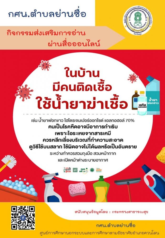 กศน.ตำบลย่านซื่อ จัดกิจกรรมส่งเสริมการอ่านผ่านสื่อออนไลน์ เรื่อง ในบ้านมีคนติดเชื้อใช้น้ำยาฆ่าเชื้อ