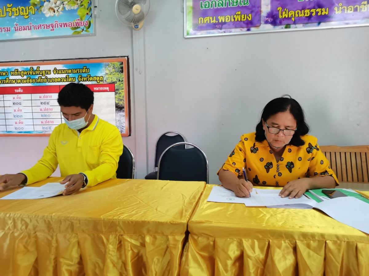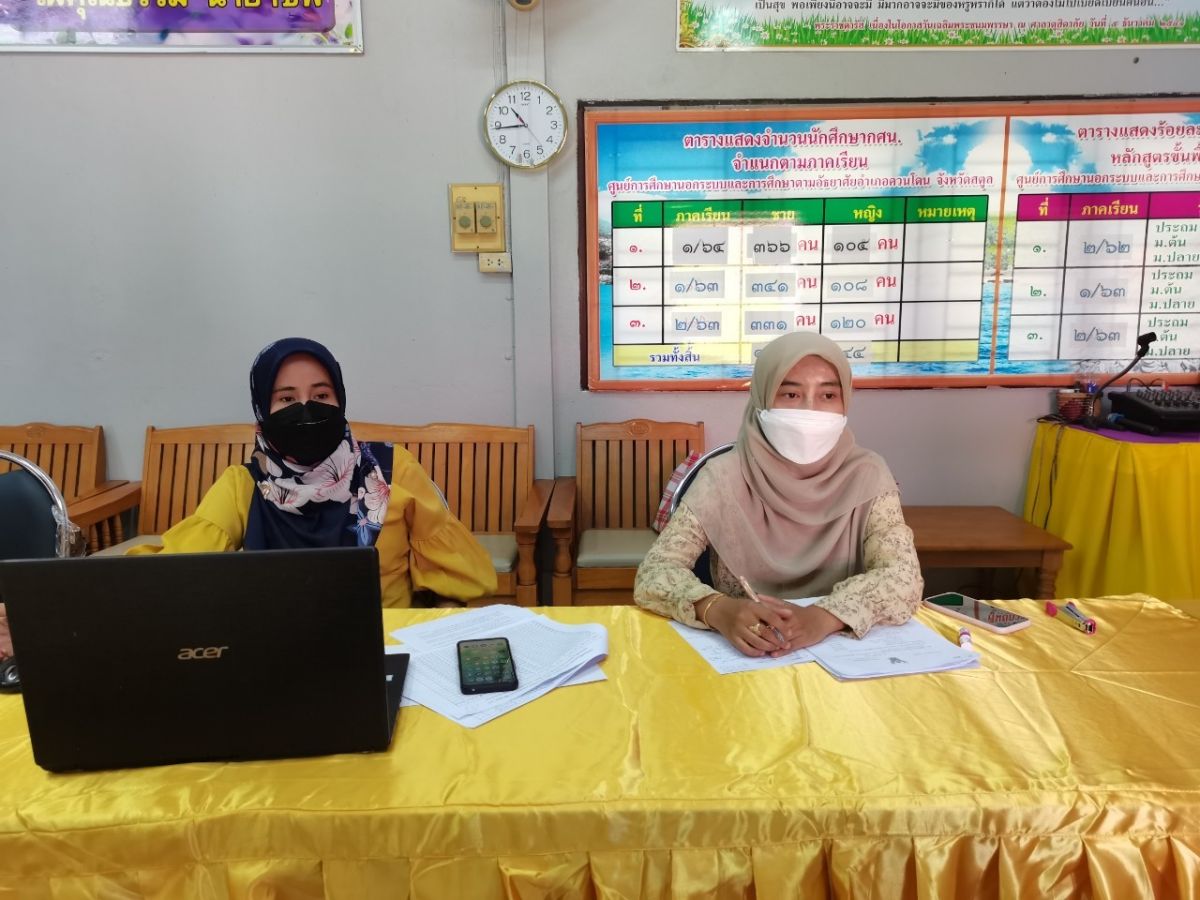 นางสาวฮาบีบะห์ เจ๊ะสมอเจ๊ะ ครู กศน.ตำบลควนโดน และนายอนันต์ ลัสมาน ครูอาสาสมัคร กศน.ตำบลควนโดน พร้อมด้วยด้วยบุคลกร กศน.อำเภอควนโดน เข้าร่วมประชุมบุคลากรในสังกัดสถานศึกษาประจำสัปดาห์ เพื่อเตรียมความพร้อมก่อนการวัดผลและประเมินผลการสอบปลายภาคเรียนที่ 2 ปีการศึกษา 2564 ในการดำเนินการประชุมครั้งนี้เป็นไปตามมาตรการป้องกันการแพร่ระบาดของโรคติดเชื้อไวรัสโคโรนา 2019 อย่างเคร่งครัด ณ ห้องประชุม กศน.อำเภอควนโดน จังหวัดสตูล โดยมีนางเนาวรัตน์ ศรีหมั่น ครู ชำนาญการ รักษาการในตำแหน่ง ผู้อำนวยการ กศน.อำเภอควนโดน จังหวัดสตูล เป็นประธานและดำเนินการประชุม