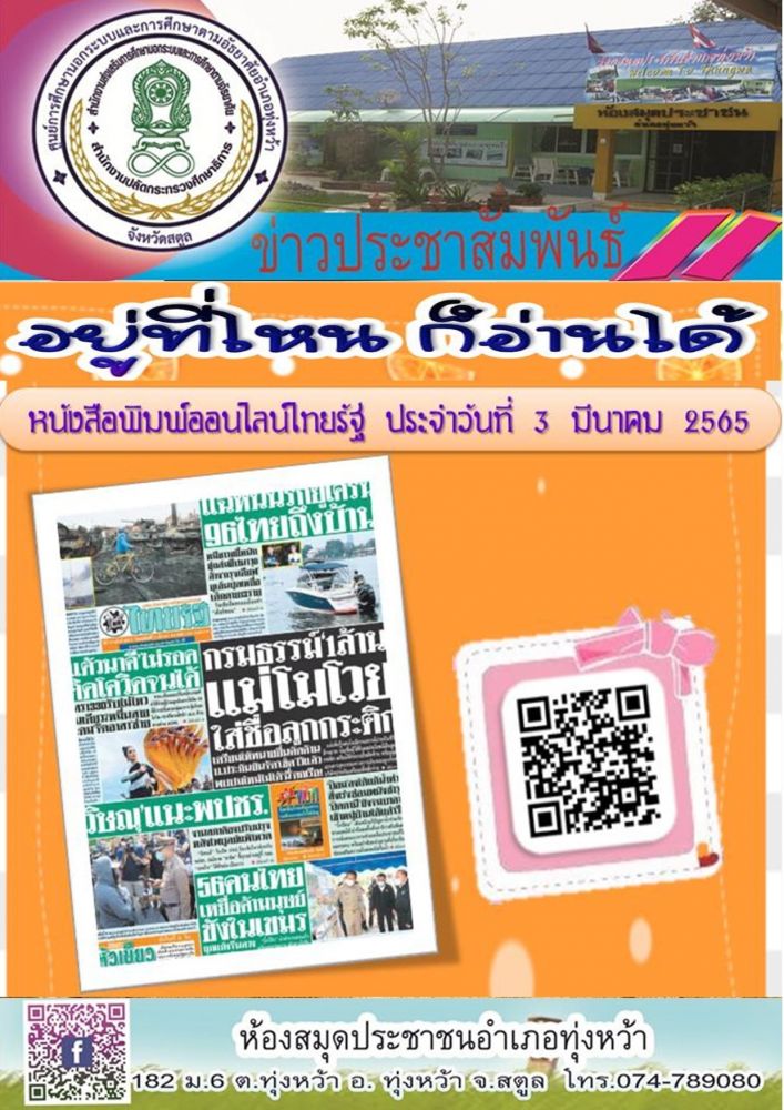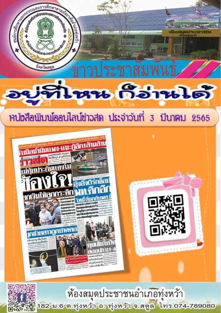 ห้องสมุดประชาชนอำเภอทุ่งหว้า ส่งเสริมการอ่านออนไลน์📚📖 \"หนังสือพิมพออนไลน์ \"
