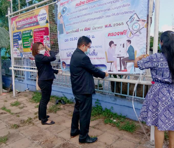 นายอาดำ ลิงาลาห์ ผู้อำนวยการศูนย์ กศน.อำเภอทุ่งหว้า จังหวัดสตูล มอบหมายให้คณะทีมงาน ติดป้ายประชาสัมพันธ์ "โครงการโลกสวย ตาใส คนไทยไร้ต้อกระจก" ขอเชิญชวนผู้สนใจ โดยจะให้บริการตรวจคัดกรองผู้ที่มีปัญหาสายตาเลือนราง เพื่อลดอัตราการตาบอดและป้องกันไม่ให้เกิดการตาบอด ฟรี ในเขตอำเภอทุ่งหว้า และอำเภอใกล้เคียง ในวันพุฤหัสบดีที่ 10 มีนาคม 2565 ตั้งแต่เวลา 09.00-12.00 น.