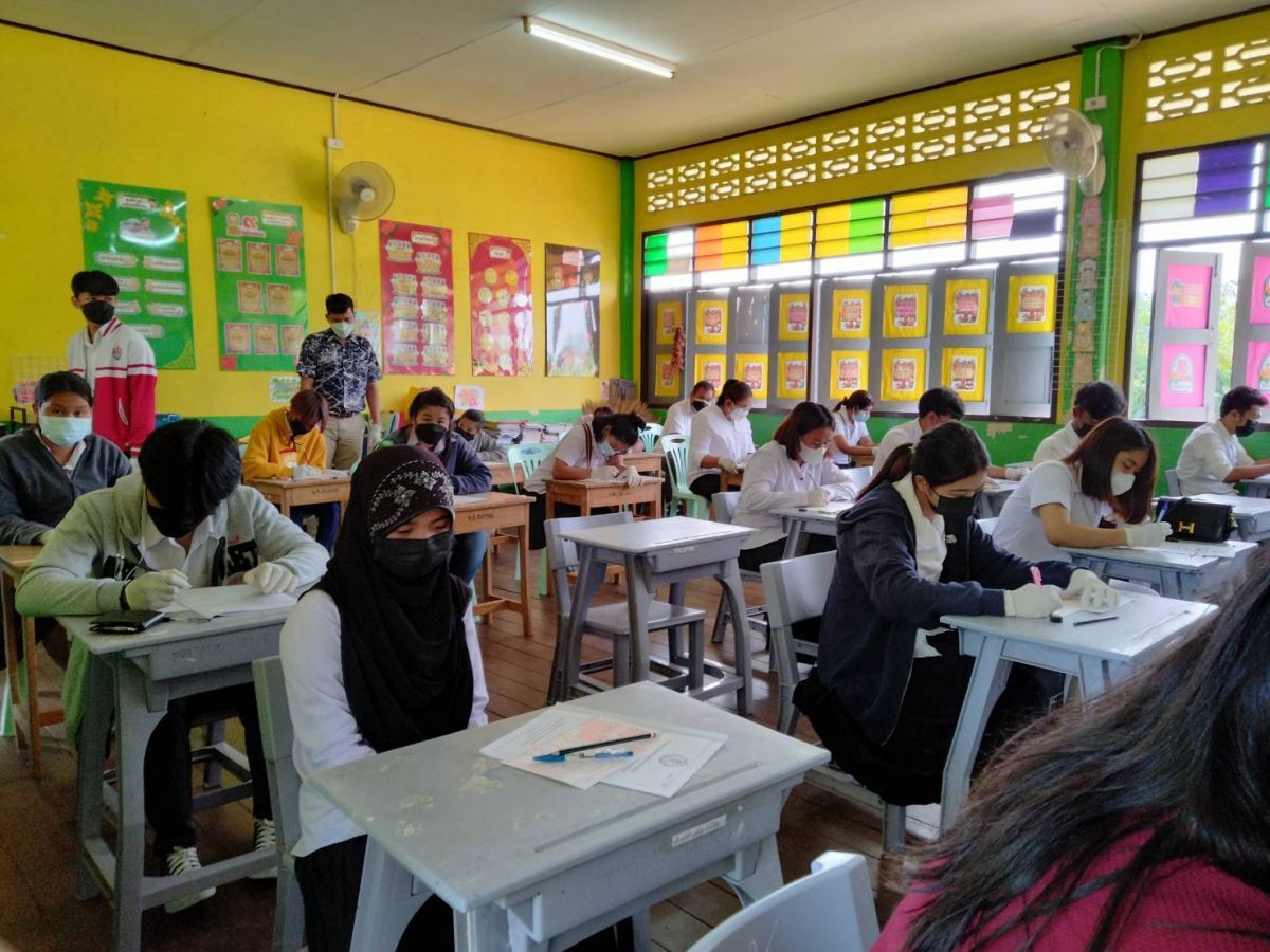 กศน.อำเภอละงู ดำเนินการสอบวัดผลสัมฤทธิ์ ปลายภาคเรียน หลักสูตรการศึกษานอกระบบ ระดับการศึกษาขั้นพื้นฐาน พุทธศักราช 2551 ประจำภาคเรียนที่ 2 ปีการศึกษา 2564 ทั้งนี้การดำเนินการสอบปฏิบัติตามมาตรการเฝ้าระวังและป้องกันการแพร่ระบาดของโรคติดเชื้อไวรัสโคโรน่า 2019 (COVID-19) อย่างเคร่งครัด ณ สนามสอบ กศน.อำเภอละงู