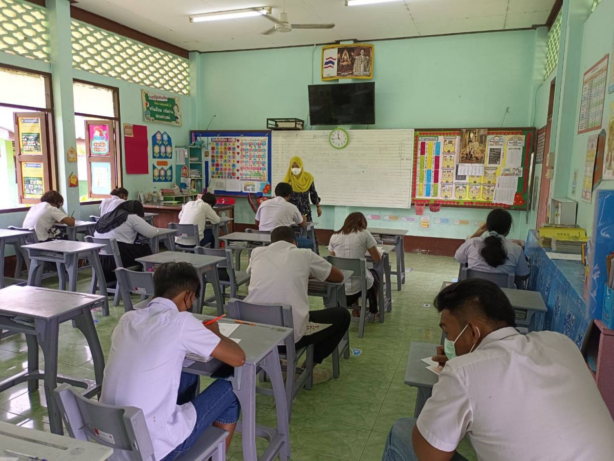 นายอาดำ ลิงาลาห์ ผู้อำนวยการศูนย์ กศน.อำเภอทุ่งหว้า จังหวัดสตูล มอบหมายให้นายอับดุลวาฮาบ รอเหมมัน ครูผู้ช่วย นายสมบูลย์ คอยอาสา ครูอาสาฯ และคณะครู ดำเนินการสอบวัดผลสัมฤทธิ์ ปลายภาคเรียน หลักสูตรการศึกษานอกระบบ ระดับการศึกษาขั้นพื้นฐาน พุทธศักราช 2551 ประจำภาคเรียนที่ 2 ปีการศึกษา 2564 ทั้งการดำเนินการสอบปฏิบัติตามมาตรการเฝ้าระวังและป้องกันการแพร่ระบาดของโรคติดเชื้อไวรัสโคโรน่า 2019 (COVID-19) อย่างเคร่งครัด