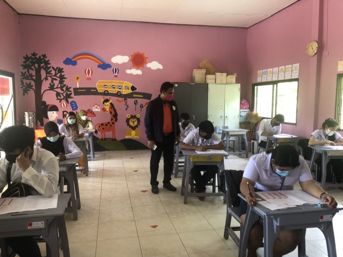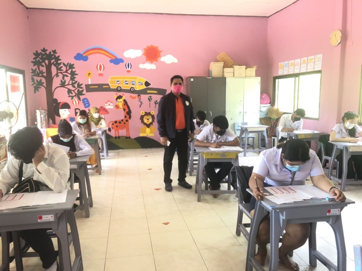 นายอาดำ ลิงาลาห์ ผู้อำนวยการศูนย์ กศน.อำเภอทุ่งหว้า จังหวัดสตูล ลงพื้นที่นิเทศสนามสอบการวัดผลสัมฤทธิ์ ปลายภาคเรียน หลักสูตรการศึกษานอกระบบ ระดับการศึกษาขั้นพื้นฐาน พุทธศักราช 2551 ประจำภาคเรียนที่ 2 ปีการศึกษา 2564 ทั้งการดำเนินการสอบปฏิบัติตามมาตรการเฝ้าระวังและป้องกันการแพร่ระบาดของโรคติดเชื้อไวรัสโคโรน่า 2019 (COVID-19) อย่างเคร่งครัด