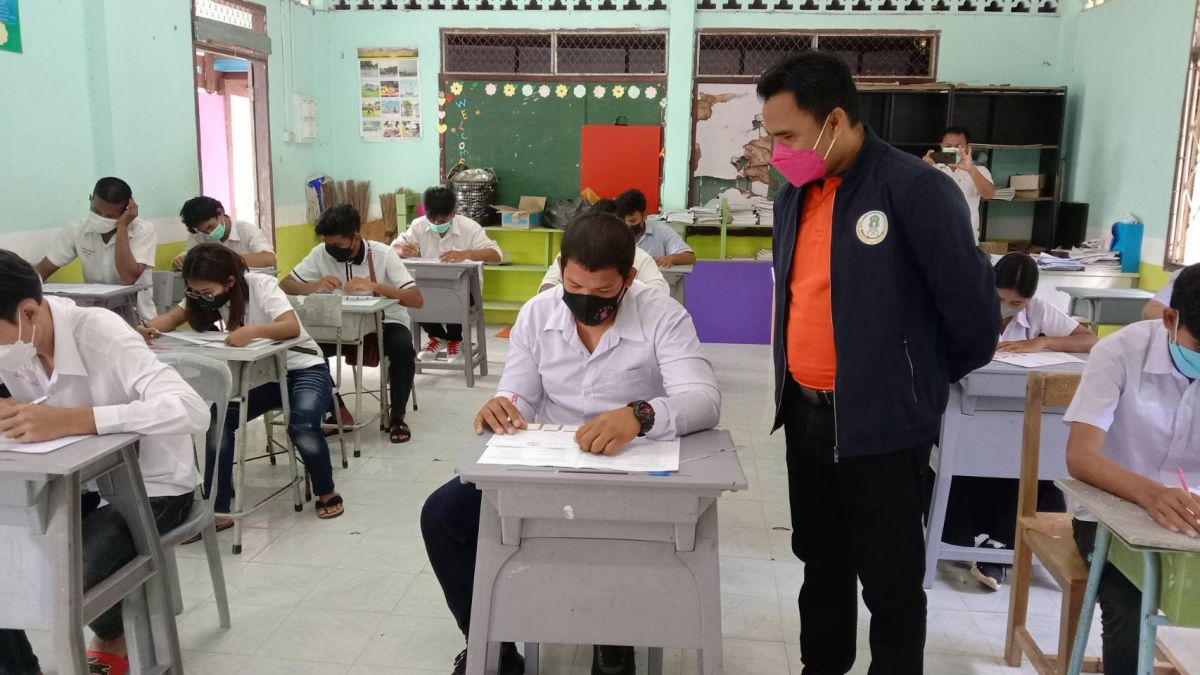 นายอาดำ ลิงาลาห์ ผู้อำนวยการศูนย์ กศน.อำเภอทุ่งหว้า จังหวัดสตูล ลงพื้นที่นิเทศสนามสอบการวัดผลสัมฤทธิ์ ปลายภาคเรียน หลักสูตรการศึกษานอกระบบ ระดับการศึกษาขั้นพื้นฐาน พุทธศักราช 2551 ประจำภาคเรียนที่ 2 ปีการศึกษา 2564 ทั้งการดำเนินการสอบปฏิบัติตามมาตรการเฝ้าระวังและป้องกันการแพร่ระบาดของโรคติดเชื้อไวรัสโคโรน่า 2019 (COVID-19) อย่างเคร่งครัด
