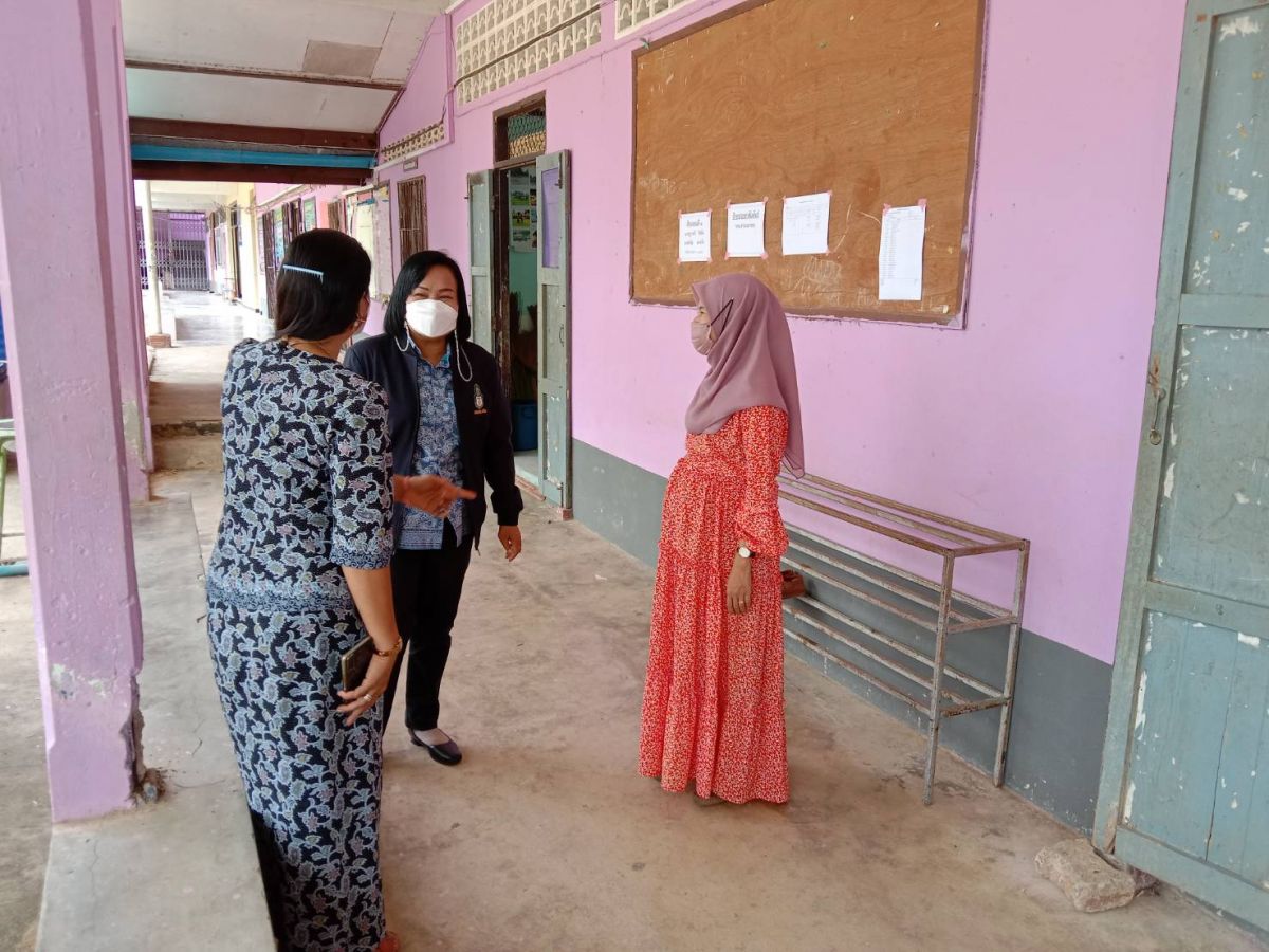 นายอาดำ ลิงาลาห์ ผู้อำนวยการศูนย์ กศน.อำเภอทุ่งหว้า จังหวัดสตูล มอบหมายให้นางสาวพัชรี ยอดราช บรรณารักษ์ นางสาวยูวาหรี รีหมีน ครูผู้สอนคนพิการ ร่วมต้อนรับ นางสาวอภิมุข ศรีสมัย ผู้อำนวยการสถาบัน กศน.ภาคใต้ และเจ้าหน้าที่ที่เกี่ยวข้อง ในการนิเทศสนามสอบการวัดผลสัมฤทธิ์ ปลายภาคเรียน หลักสูตรการศึกษานอกระบบ ระดับการศึกษาขั้นพื้นฐาน พุทธศักราช 2551 ประจำภาคเรียนที่ 2 ปีการศึกษา 2564 ทั้งการดำเนินการสอบปฏิบัติตามมาตรการเฝ้าระวังและป้องกันการแพร่ระบาดของโรคติดเชื้อไวรัสโคโรน่า 2019 (COVID-19) อย่างเคร่งครัด