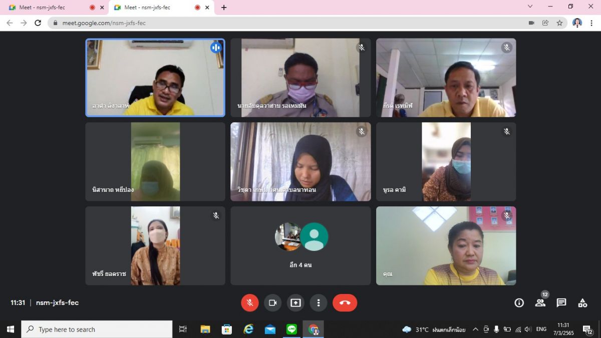 นายอาดำ ลิงาลาห์ ผู้อำนวยการศูนย์ กศน.อำเภอทุ่งหว้า จังหวัดสตูล ประชุมคณะทีมงาน เพื่อติดตามการดำเนินงาน ตามนโยบาย ที่สำคัญของรัฐบาล และติดตามการดำเนินงานให้ตรงตามเป้าหมาย ผ่าน Google meet