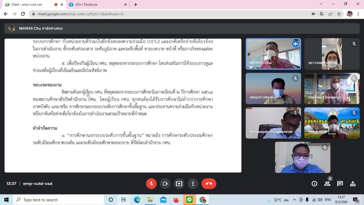 กศน.อำเภอทุ่งหว้า เข่าร่วมประชุมเชิงปฏิบัติการการใช้งานแอปพลิเคชัน \"พาน้องกลับมาเรียน\" และการใช้งานระบบ dropuot.edudev.in.th ผ่านระบบออนไลน์