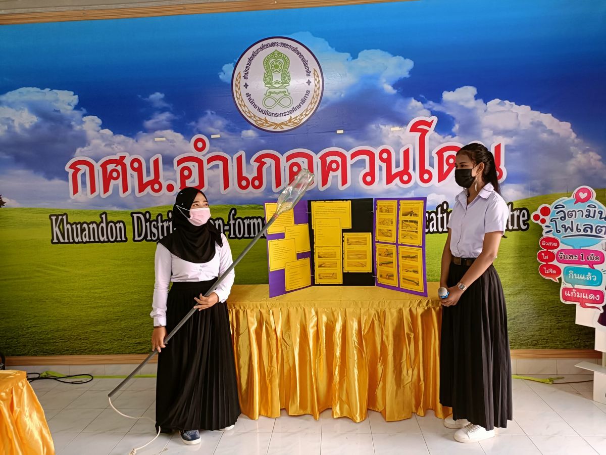นางสาวสุนีย์ ไมมะหาด ครู กศน.ตำบลควนสตอ และนางรัตติยา ทรุพงษ์ ครูอาสาสมัครฯตำบลควนสตอได้รับมอบหมายจาก นางเนาวรัตน์ ศรีหมั่น ครู ชำนาญการ รักษาการในตำแหน่ง ผู้อำนวยการ กศน.อำเภอควนโดน นำ นศ.เข้าร่วมโครงการประกวดโครงงานวิทยาศาสตร์ สำหรับ นศ.กศน. เพื่อส่งเสริมความรู้ความเข้าใจกระบวนการทางวิทยาศาสตร์เทคโนโลยีให้กับ นศ.กศน. กิจกรรมครั้งนี้ เป็นไปตามมาตรการการป้องกันการแพร่ระบาดของโรคติดเชื้อไวรัสโคโรนา 2019 อย่างเคร่งครัด ณ กศน. อำเภอควนโดน จังหวัดสตูล
