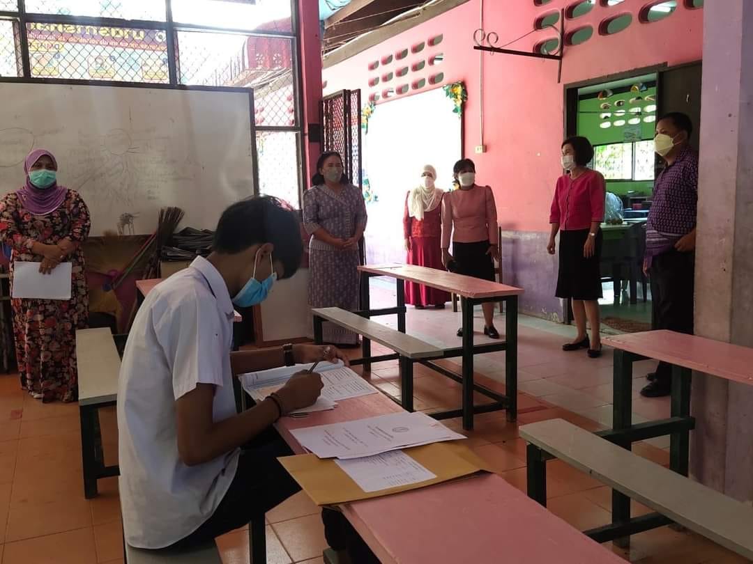 นางเนาวรัตน์ ศรีหมั่น ครู ชำนาญการ รักษาการในตำแหน่ง ผู้อำนวยการศูนย์ กศน.อำเภอควนโดน จังหวัดสตูล และคณะครู ร่วมต้อนรับนางสาวนราวรรณ เวชธรรม ผู้อำนวยการสำนักงาน กศน.จังหวัดสตูล พร้อมด้วย เจ้าหน้าที่ที่เกี่ยวข้อง ในการนิเทศสนามสอบวัดผลสัมฤทธิ์ ปลายภาคเรียน หลักสูตรการศึกษานอกระบบ ระดับการศึกษาขั้นพื้นฐาน พุทธศักราช 2551 ประจำภาคเรียนที่ 2 ปีการศึกษา 2564 ทั้งการดำเนินการสอบปฏิบัติตามมาตรการเฝ้าระวังและป้องกันการแพร่ระบาดของโรคติดเชื้อไวรัสโคโรน่า 2019 (COVID-19) อย่างเคร่งครัด #wow1GoodTeacher #พัฒนาระบบการเรียนรู้การเรียน ณ โรงเรียนบ้านทางงอ ตำบลควนสตอ อำเภอควนโดน จังหวัดสตูล