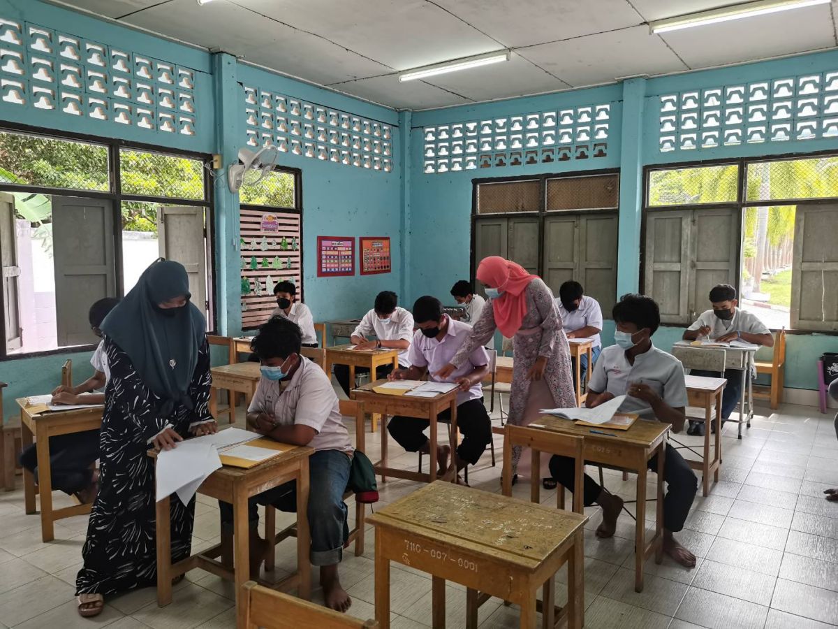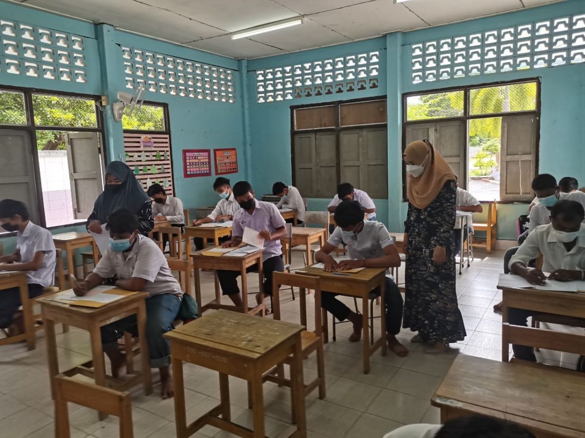 นางสาวนุรวาตี หมัดสกุล ครู กศน.ตำบลย่านซื่อ และนางสาวรมณีย์ ทิ้งปากถ้ำ ครูอาสาสมัคร กศน.ตำบลย่านซื่อ ได้รับมอบหมายจาก นางเนาวรัตน์ ศรีหมั่น ครูชำนาญการรักษาการ ในตำแหน่ง ผู้อำนวยการ กศน.อำเภอควนโดน ดำเนินการสอบวัดผลสัมฤทธิ์ ปลายภาคเรียนที่ 2 ปีการศึกษา 2564 นักศึกษา ระดับประถมศึกษาและมัธยมศึกษาตอนต้น ณ โรงเรียนบ้านปันจอร์ ตำบลย่านซื่อ อำเภอควนโดน จังหวัดสตูล โดยกระบวนการดำเนินการจัดกิจกรรมเป็นไปตามแนวปฏิบัติการควบคุมและป้องกันการแพร่ระบาดของโรคติดเชื้อไวรัสโคโรน่า 2019