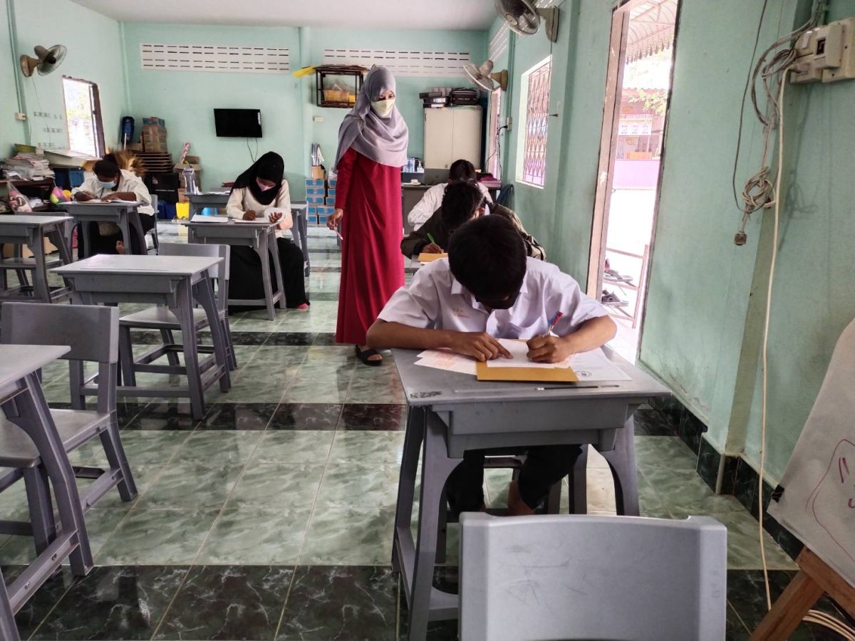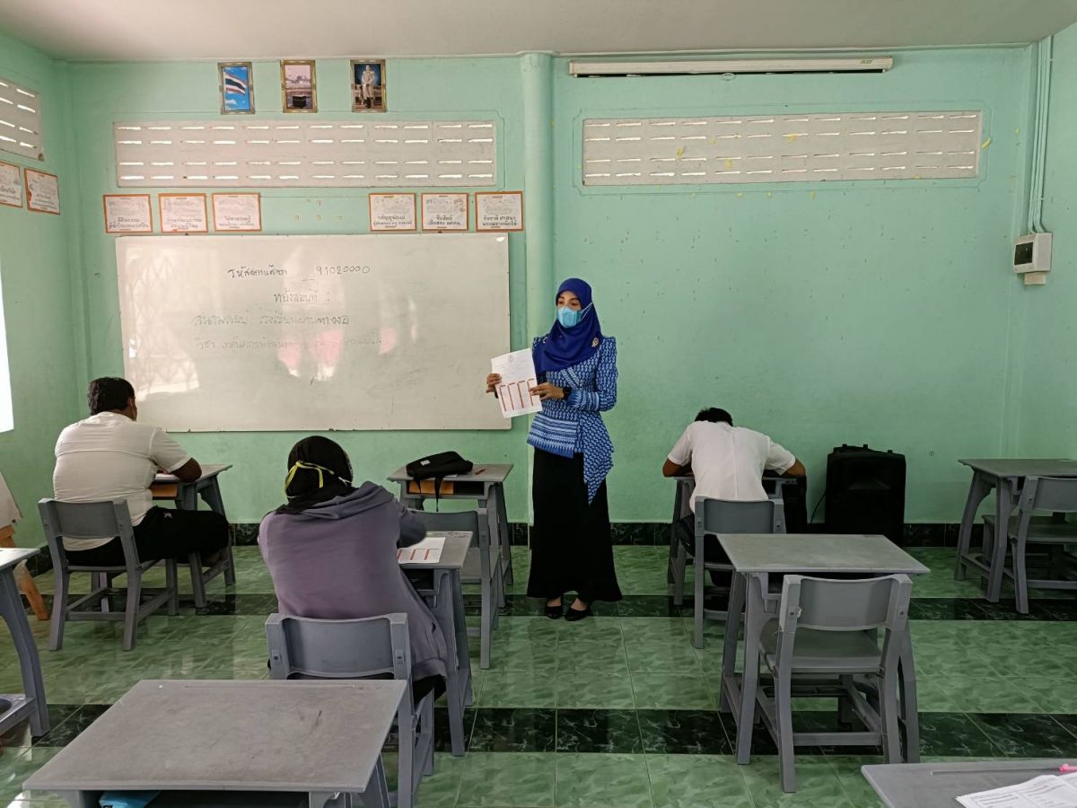 นางสาวสุนีย์ ไมมะหาด ครู กศน.ตำบลควนสตอ และนางรัตติยา ทรุพงษ์ ครูอาสาสมัคร กศน.ตำบลควนสตอ ได้รับมอบหมายจาก นางเนาวรัตน์ ศรีหมั่น ครูชำนาญการรักษาการ ในตำแหน่ง ผู้อำนวยการ กศน.อำเภอควนโดน ดำเนินการสอบวัดผลสัมฤทธิ์ ปลายภาคเรียนที่ 2 ปีการศึกษา 2564 นักศึกษาระดับมัธยมศึกษาตอนต้น ณ โรงเรียนบ้านทางงอ ตำบลควนสตอ อำเภอควนโดน จังหวัดสตูล โดยกระบวนการดำเนินการจัดกิจกรรมเป็นไปตามแนวปฏิบัติการควบคุมและป้องกันการแพร่ระบาดของโรคติดเชื้อไวรัสโคโรน่า 2019 อย่างเคร่งครัด
