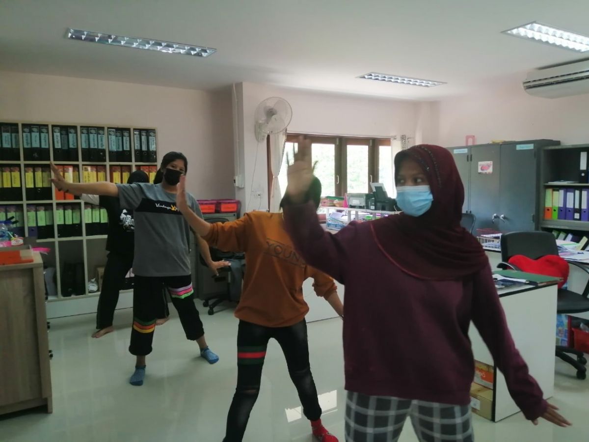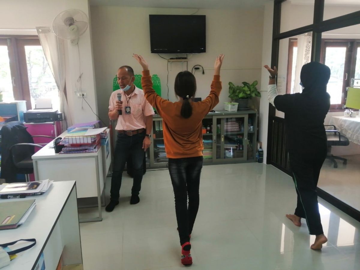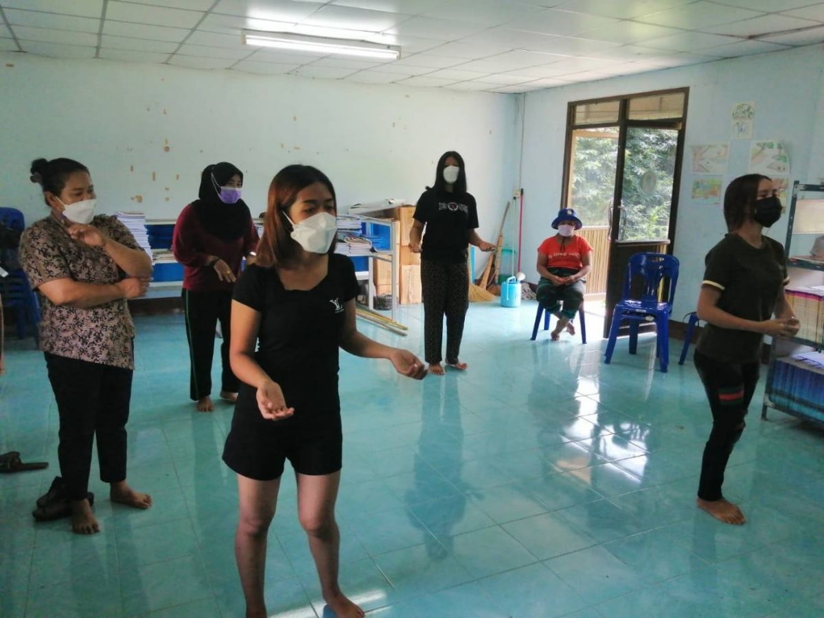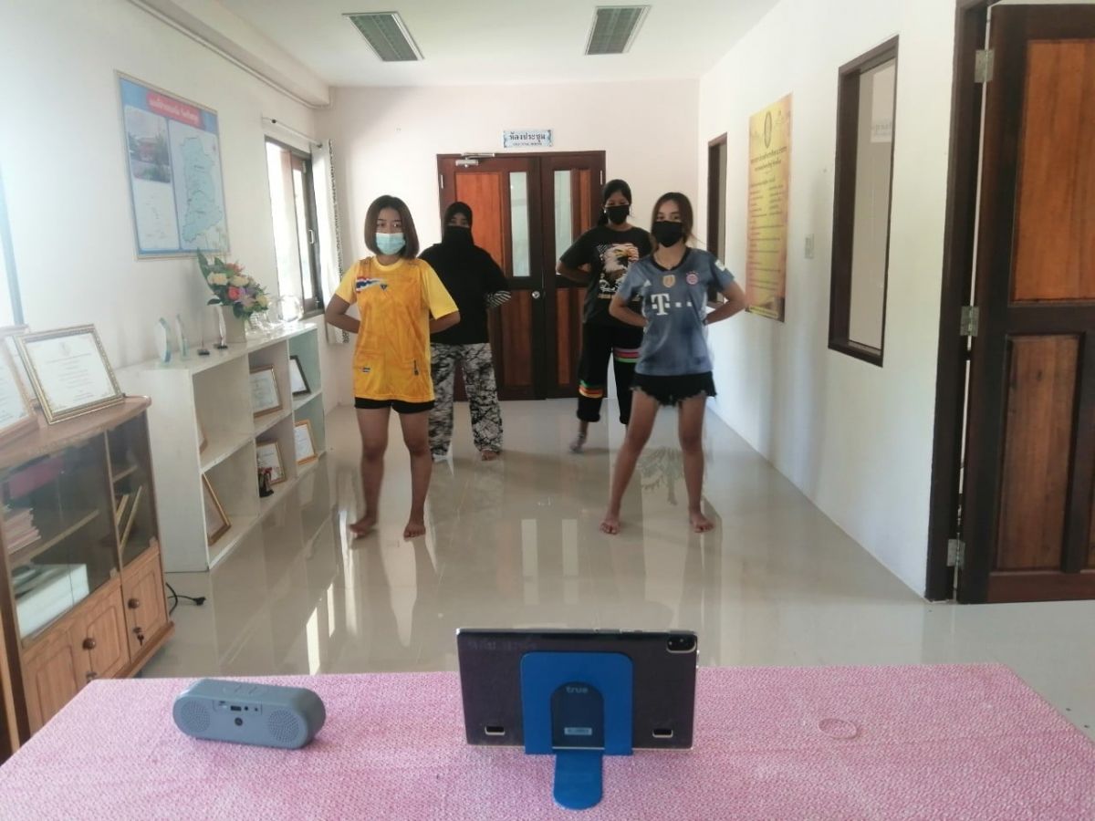 นางสาวจตุพร ทหารไทย ครูชำนาญการ รักษาการในตำแหน่ง ผู้อำนวยการศูนย์ กศน.อำเภอมะนัง จังหวัดสตูล มอบหมายให้นางนฤมล ช่วยดำ ครูอาสาสมัครฯ พร้อมด้วยนางสาวทิพาพร โต๊ะมิ ครูอาสาสมัคร ฝึกซ้อมรำการประกวด กศน.ชาเลนจ์ ประจำปี 2565 นักศึกษา ระดับชั้นมัธยมศึกษาตอนต้น เพื่อเตรียมความพร้อมในการประกวด กศน.ชาเลนจ์