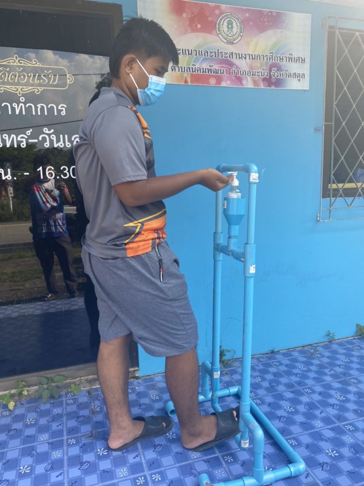 นักศึกษา กศน.อำเภอมะนัง จังหวัดสตูล ร่วมประดิษฐโครงงานจิตอาสาต้นแบบ (ที่กดเจลล้างมือแบบเท้าเหยียบ จากท่อ PVC)