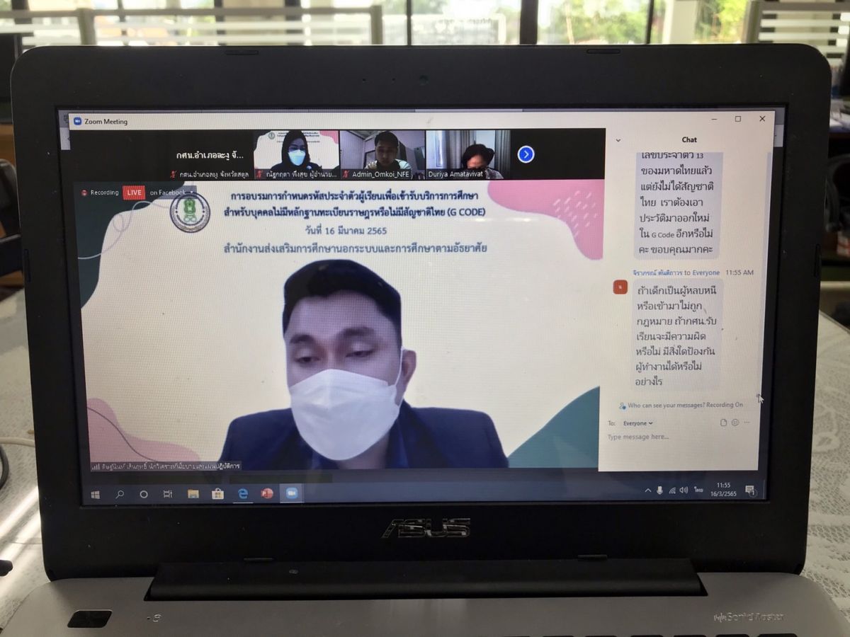 นายมรกต กันหนองผือ ผู้อำนวยการศูนย์ กศน.อำเภอละงู จังหวัดสตูล พร้อมด้วยบุคลากรทางการศึกษา ร่วมอบรมการกำหนดรหัสประจำตัวผู้เรียนเพื่อเข้ารับบริการการศึกษาสำหรับบุคคลที่ไม่มีหลักฐาน ทะเบียนราษฎรหรือไม่มีสัญชาติไทยผ่านสื่ออิเล็กทรอนิกส์ โดยระบบแอปพลิเคชั่น Zoom Cloud Meeting โดบมีนายวัลลพ สงวนนาม เลขาธิการ กศน. เป็นประธานในพิธีเปิดและบรรยายพิเศษ ณ ห้องประชุมศูนย์การศึกษานอกระบบและการศึกษาตามอัธยาศัยกลุ่มเป้าหมายพิเศษ