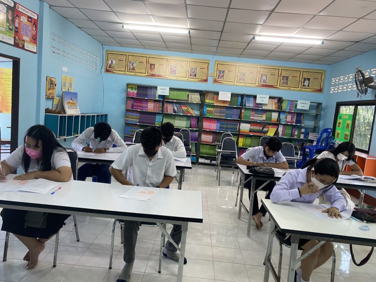 นางสาวจตุพร ทหารไทย ครูชำนาญการ รักษาการในตำแหน่ง ผู้อำนวยการ กศน.อำเภอมะนัง จังหวัดสตูล มอบหมายให้นายนภัทร จันทวิลาศ ครู กศน.ตำบลนิคมพัฒนา พร้อมด้วยนางสาวทิพาพร โต๊ะมิ ครูอาสาสมัครฯ ดำเนินการสอบวัดผลสัมฤทธิ์ ปลายภาคเรียน หลักสูตรการศึกษานอกระบบ ระดับการศึกษาขั้นพื้นฐาน พุทธศักราช 2551 ประจำภาคเรียนที่ 2 ปีการศึกษา 2564 (นักศึกษาที่ติดโควิด และนักศึกษากลุ่มเสี่ยงสูง) ทั้งการดำเนินการสอบปฏิบัติตามมาตรการเฝ้าระวังและป้องกันการแพร่ระบาดของโรคติดเชื้อไวรัสโคโรน่า 2019 (COVID-19) อย่างเคร่งครัด