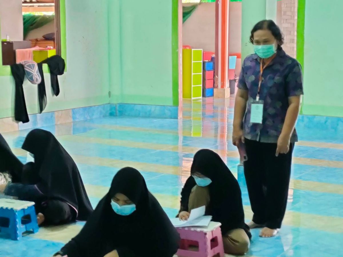 นางสาววชิรา คงพูล บรรณารักษ์ปฏิบัติการรักษาในตำแหน่ง ผู้อำนวยการ กศน.อำเภอท่าแพ จังหวัดสตูล ลงพื้นที่เพื่อนิเทศสนามสอบวัดผลสัมฤทธิ์ ปลายภาคเรียนที่ 2 ปีการศึกษา 2564 นักศึกษาระดับประถมศึกษา ระดับมัธยมศึกษาตอนต้นและระดับมัธยมศึกษาตอนปลาย ณ สถาบันศึกษาปอเนาะดารุลกรุอานอบีบักรินณ์ ตำบลสาคร อำเภอท่าแพ จังหวัดสตูล