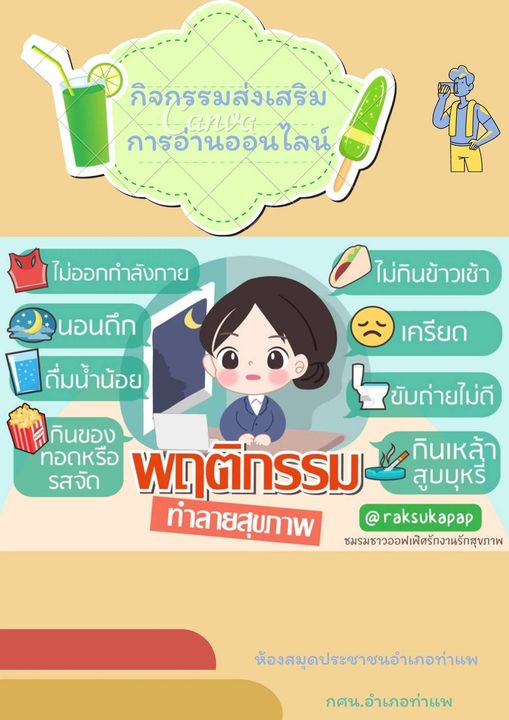 " พฤติกรรมทำลายสุขภาพ" เพื่อส่งเสริมการอ่านให้กับบุคคลทั่วไปที่สนใจ