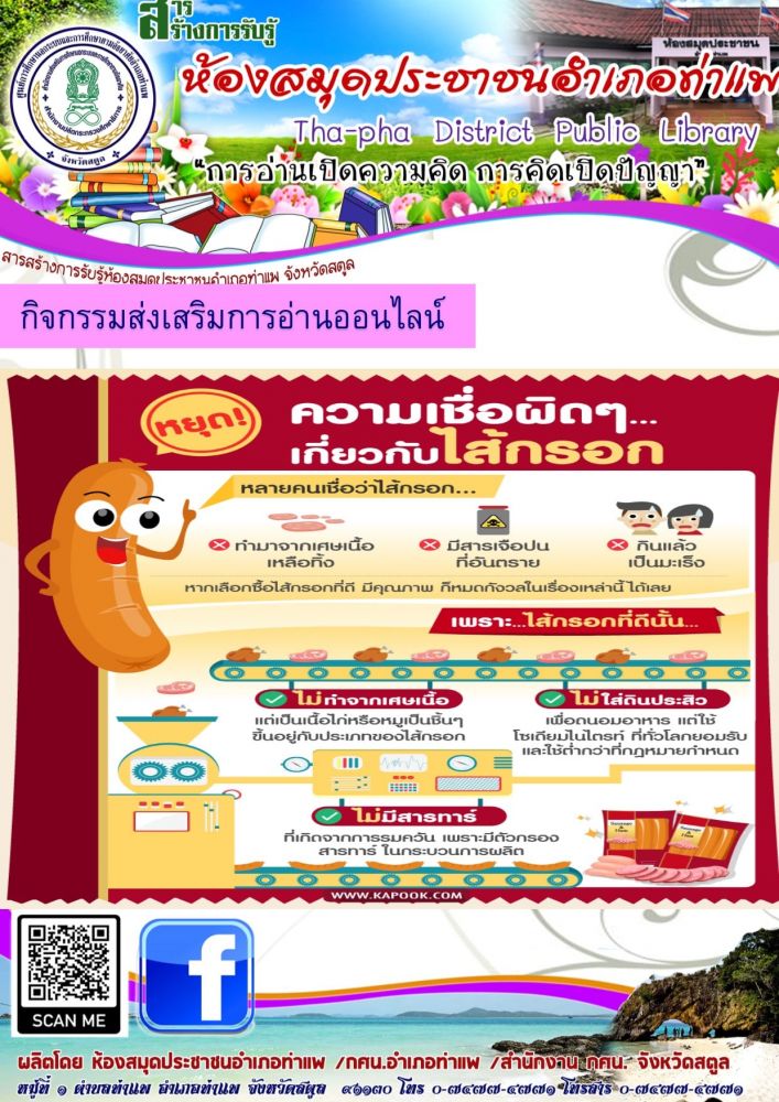" หยุด!ความเชื่อผิดๆ...เกี่ยวกับไส้กรอก" เพื่อส่งเสริมการอ่านให้กับประชาชนทั่วไปที่สนใจได้มีความระมัดระวังในการรับประทานอาหาร