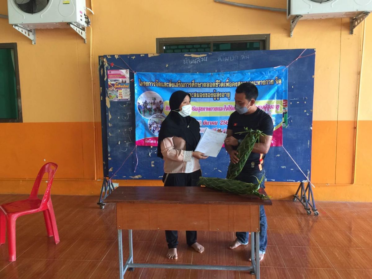 นายทวีศักดิ์ แซ่เจน ครูชำนาญการ รักษาการในตำแหน่งผู้อำนวยการศูนย์ กศน.อำเภอควนกาหลง มอบหมายให้นางวนิดา ปังแลมาปุเลา ครูอาสาฯ ลงพื้นท่ีนิเทศติดตามการจัดโครงการจัดและส่งเสริมการศึกษาตลอดชีวิตเพื่อคงสมรรถนะทางกาย จิตและสมองผู้สูงอายุ ณ มัสยิดดารุลมุมิน หมู่1 บ้านควนบ่อทองตำบลทุ่งนุ้ย อำเภอควนกาหลง จังหวัดสตูล