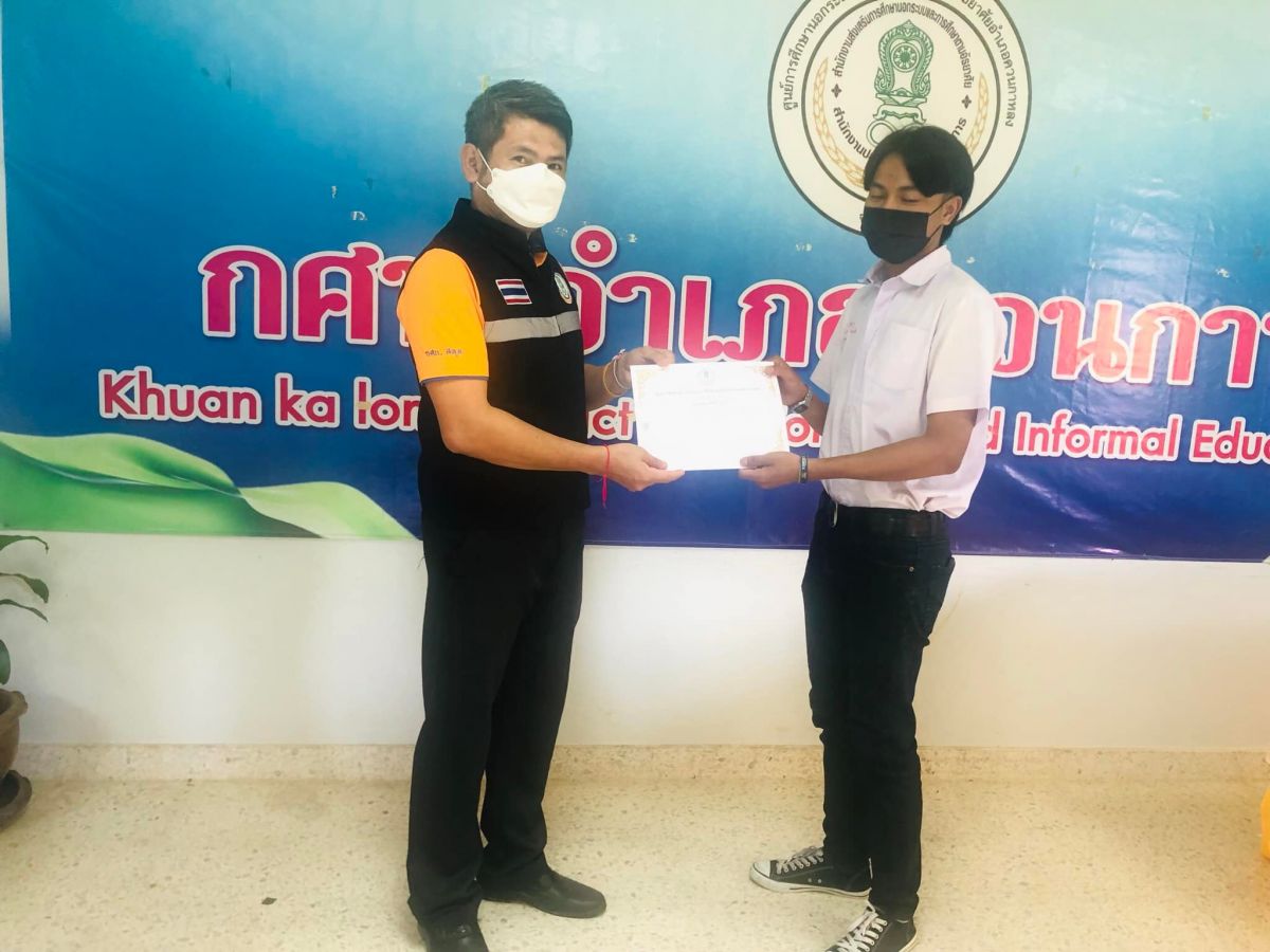 นายทวีศักดิ์ แซ่เจน ครูชำนาญการ รักษาการในตำแหน่งผู้อำนวยการศูนย์ กศน.อำเภอควนกาหลง พร้อมด้วยคณะครูร่วมแสดงความยินดีมอบเกียรติบัตรและเงินรางวัลให้กับนายมูฮัมหมาดซิกดิก ยันติง นักศึกษาระดับชั้นม.ต้นกศน.ตำบลอุใดเจริญ โดยมีนางวนิดา ปังแลมาปุเลา เป็นครูประจำกลุ่ม ท่ีทำคะแนนสอบวัดความรู้ระดับชาติ(N-net )ในรายวิชา สุขศึกษา พลศึกษา ได้100 คะแนนเต็ม ณ กศน.อำเภอควนกาหลง จังหวัดสตูล