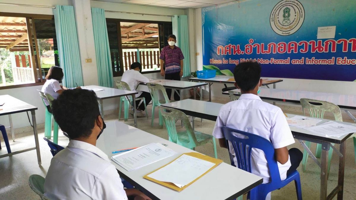 ณ สนามสอบกศน.ตำบลควนกาหลง และสนามสอบกศน.อำเภอควนกาหลง จังหวัดสตูล