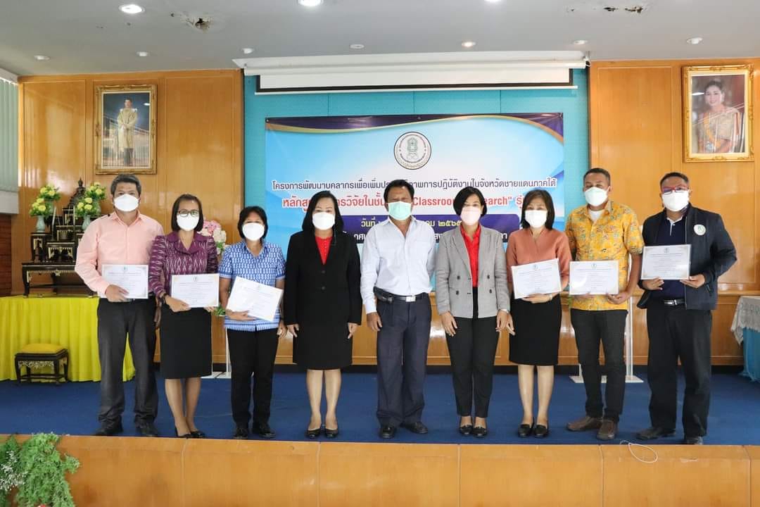 นางเนาวรัตน์ ศรีหมั่น ครูชำนาญการ รักษาการในตำแหน่ง ผู้อำนวยการ กศน.อำเภอควนโดน จังหวัดสตูล เข้าร่วมอบรมโครงการพัฒนาบุคลากรเพื่อเพิ่มประสิทธิภาพการปฏิบัติงานในจังหวัดชายแดนใต้ หลักสูตร “การวิจัยในชั้นเรียน Classroom Research” รุ่นที่ 2 ในระหว่างวันที่ 23-24 มีนาคม 2565 โดยมีนางสาวอภิมุข ศรีสมัย ผู้อำนวยการ สถาบัน กศน.ภาคใต้ เป็นประธานพิธีเปิด โดยมีกลุ่มเป้าหมายข้าราชการครู ใน 5 จังหวัดชายแดนใต้ ณ ห้องประชุม 1 สถาบัน กศน. ภาคใต้ อำเภอเมืองสงขลา จังหวัดสงขลา