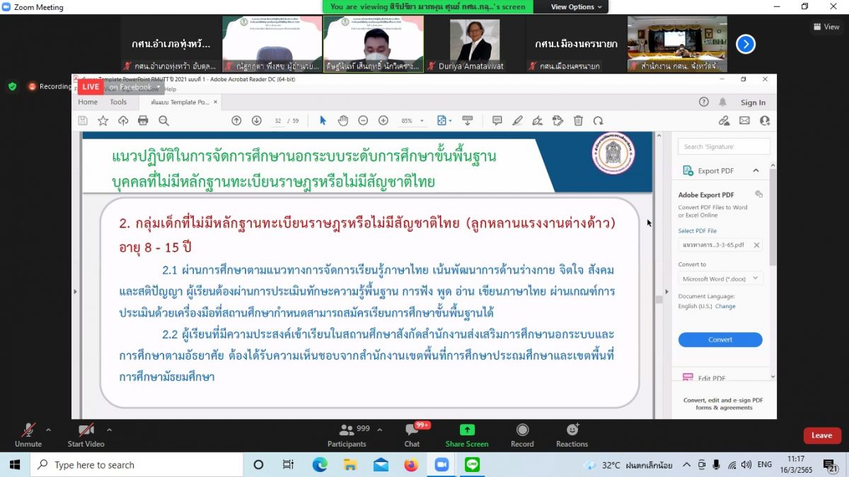 ศูนย์ส่งเสริมการเรียนรู้ระดับอำเภอทุ่งหว้า ร่วมประชุมออนไลน์ ทบทวนแนวทางการดำเนินงานเพื่อพัฒนาระบบประกันคุณภาพภายในสถานศึกษา