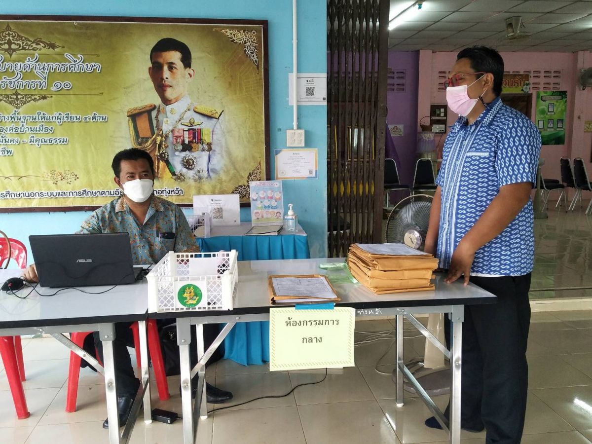 นายอาดำ ลิงาลาห์ ผู้อำนวยการศูนย์ กศน.อำเภอทุ่งหว้า จังหวัดสตูล มอบหมายให้คณะทีมงานดำเนินการสอบปลายภาคให้กับนักศึกษาที่พ้นจากความเสี่ยงจากโรคโควิด-19